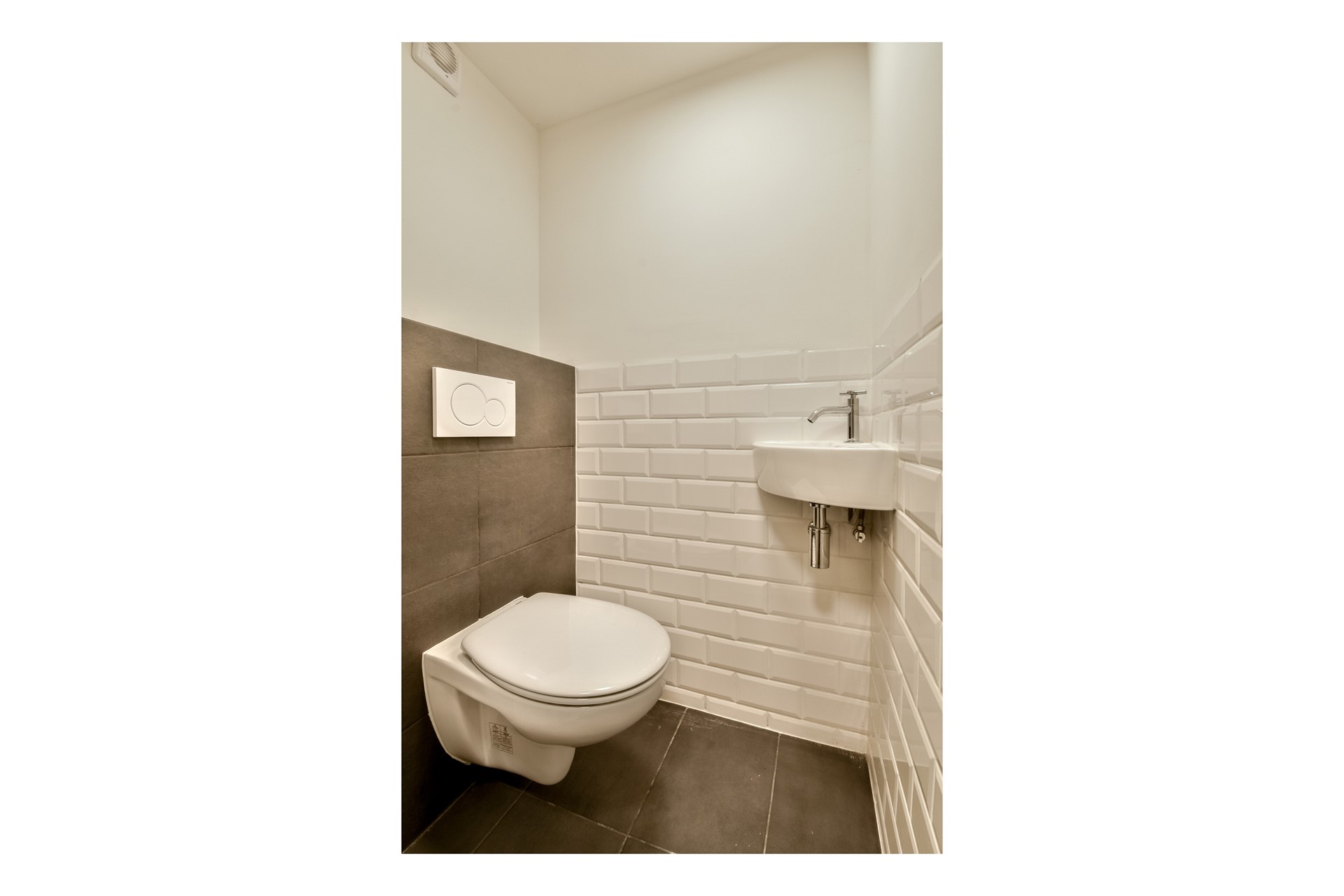 The office space has been recently renovated and features beautiful oak herringbone parquet flooring. In addition, the office space has a pantry (including dishwasher, sink, and refrigerator) and a separate toilet with washbasin. Finally, the office space is equipped with high-quality lighting fixtures.