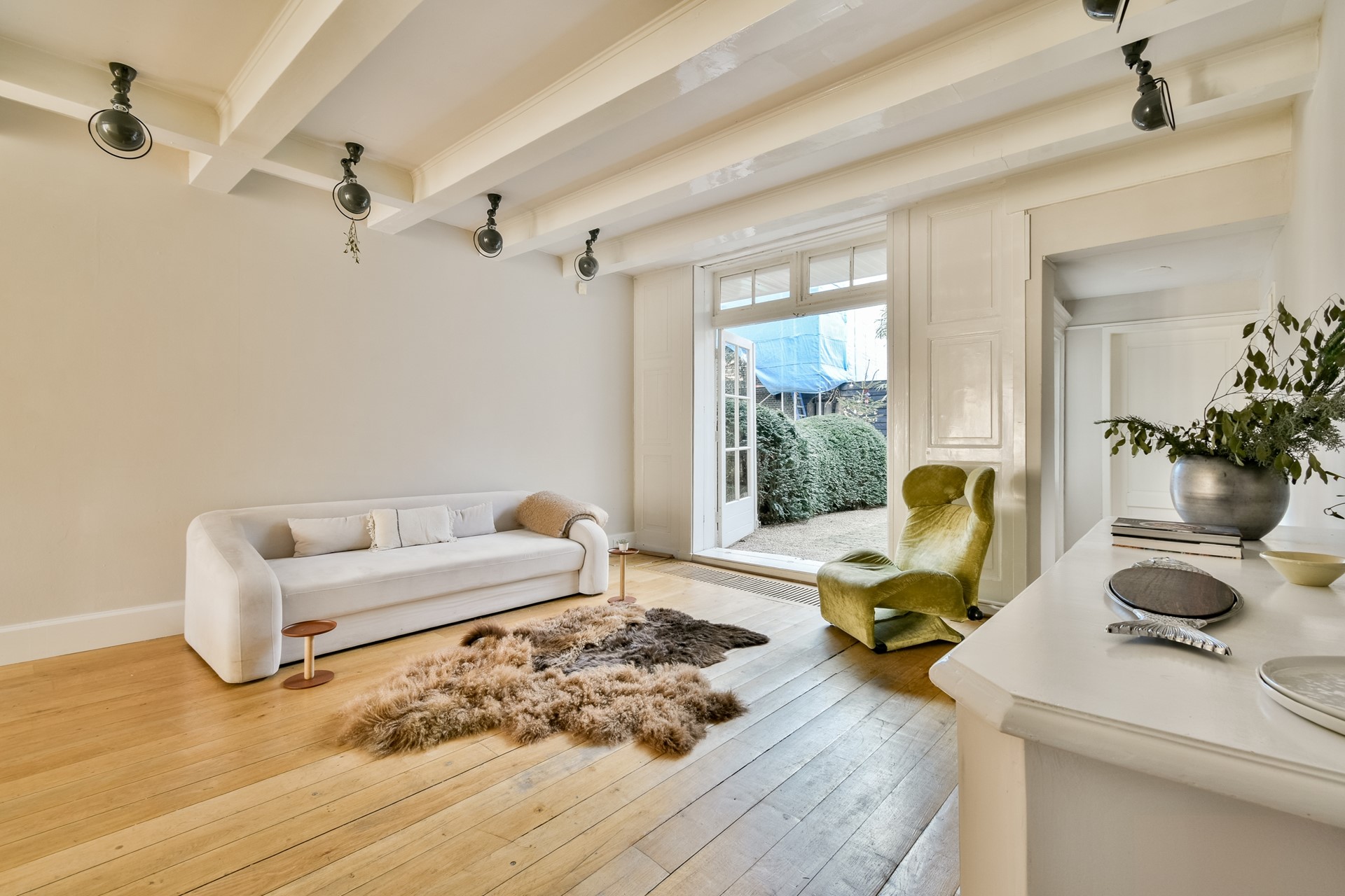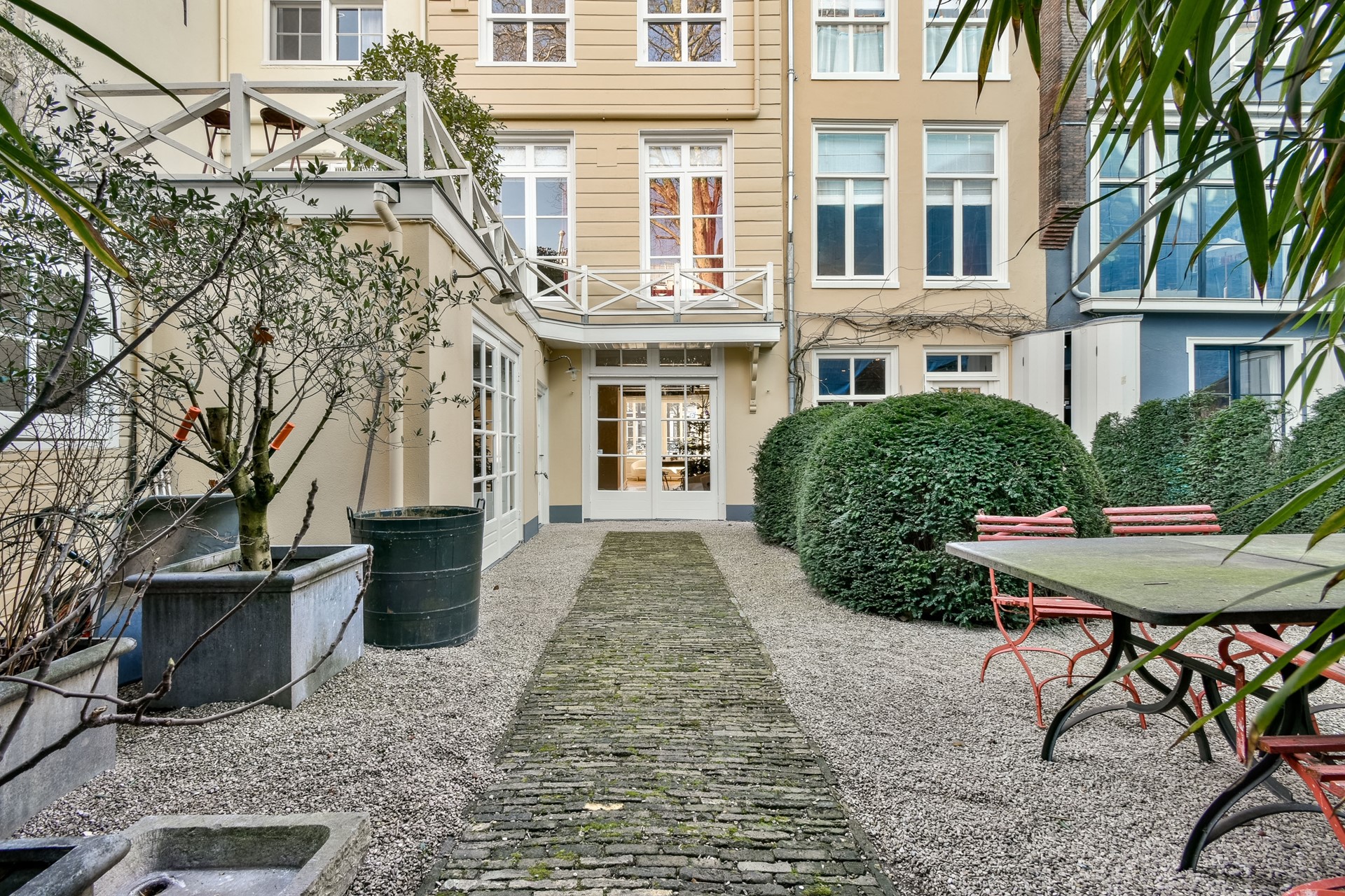 De ruimte is praktisch en sfeervol ingedeeld met drie kantoorvertrekken: een open kantoorruimte aan de voorzijde met pantry, een tussenkamer en een kantoorruimte aan de achterzijde. Alle kamers bieden via openslaande deuren direct toegang tot de zonnige privétuin, wat deze ruimte uniek maakt voor werken in het centrum van Amsterdam.