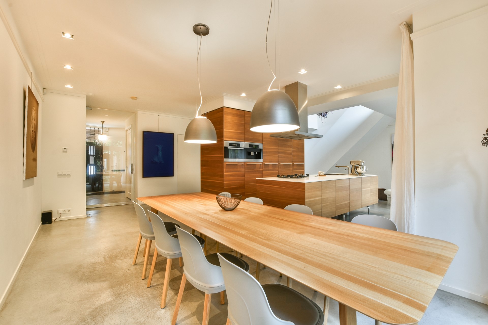 Private entrance on the ground floor. In the hall, you find a separate toilet. The open plan living is at the front facing the canal. The Bulthaup kitchen with an island is facing the garden with sliding doors to experience inside-outside living.
