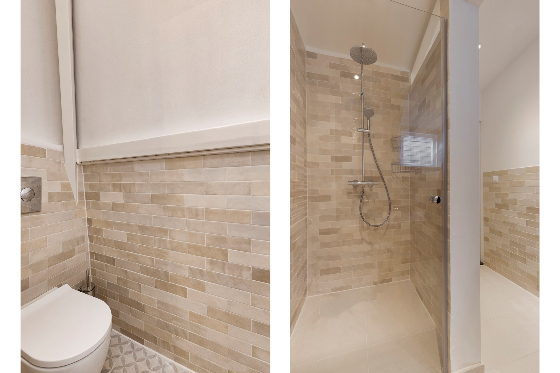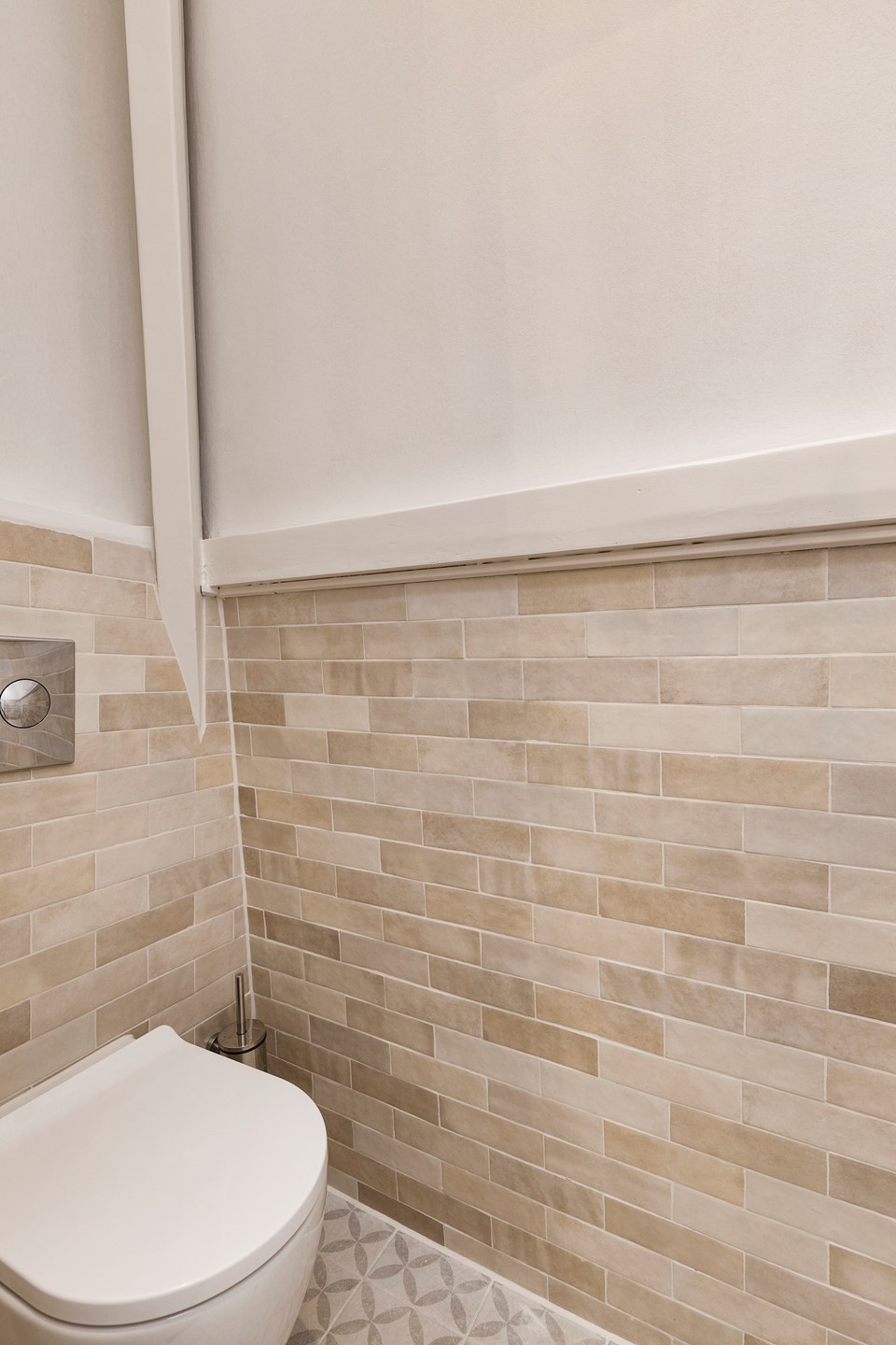 You enter the apartment on the 2nd floor of the building via the communal staircase. Off the hall there is a modern toilet and a wardrobe.