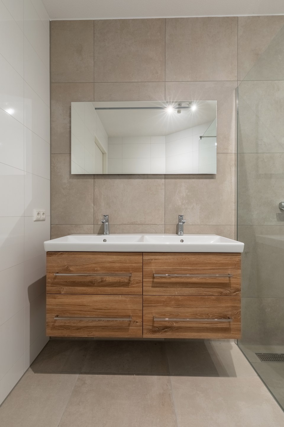 The apartment is equipped with a spacious modern bathroom with walk in shower, double sink, floor heating and towel heater.