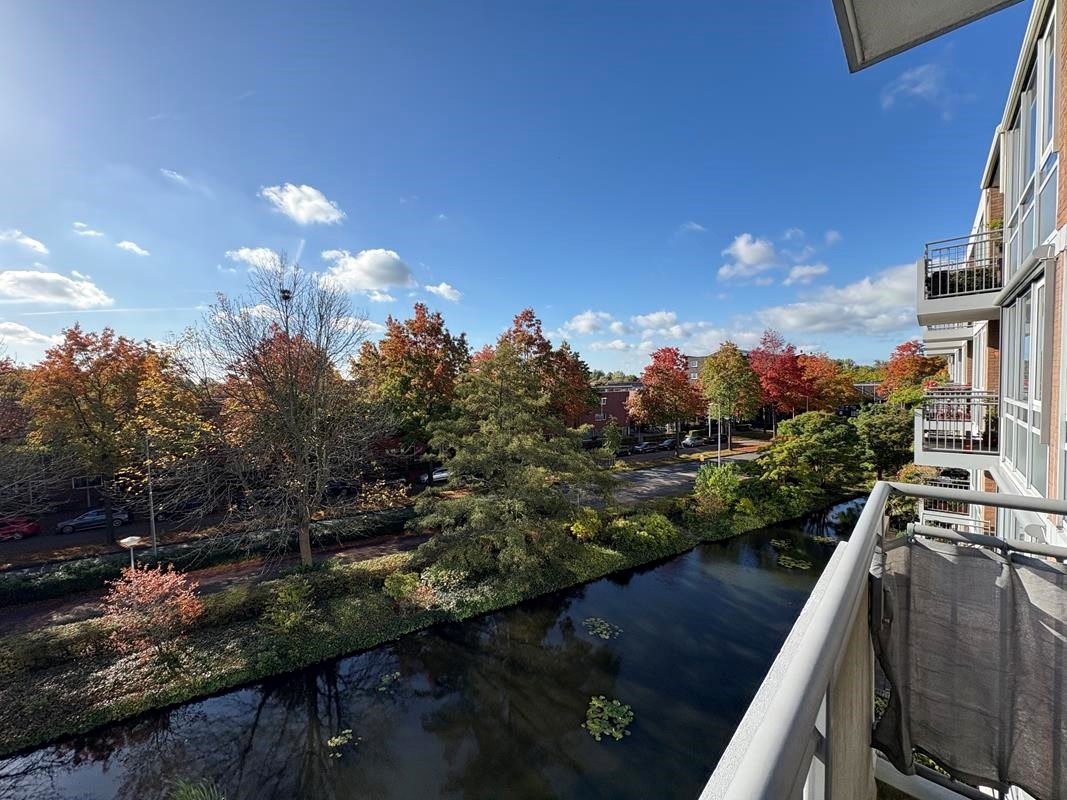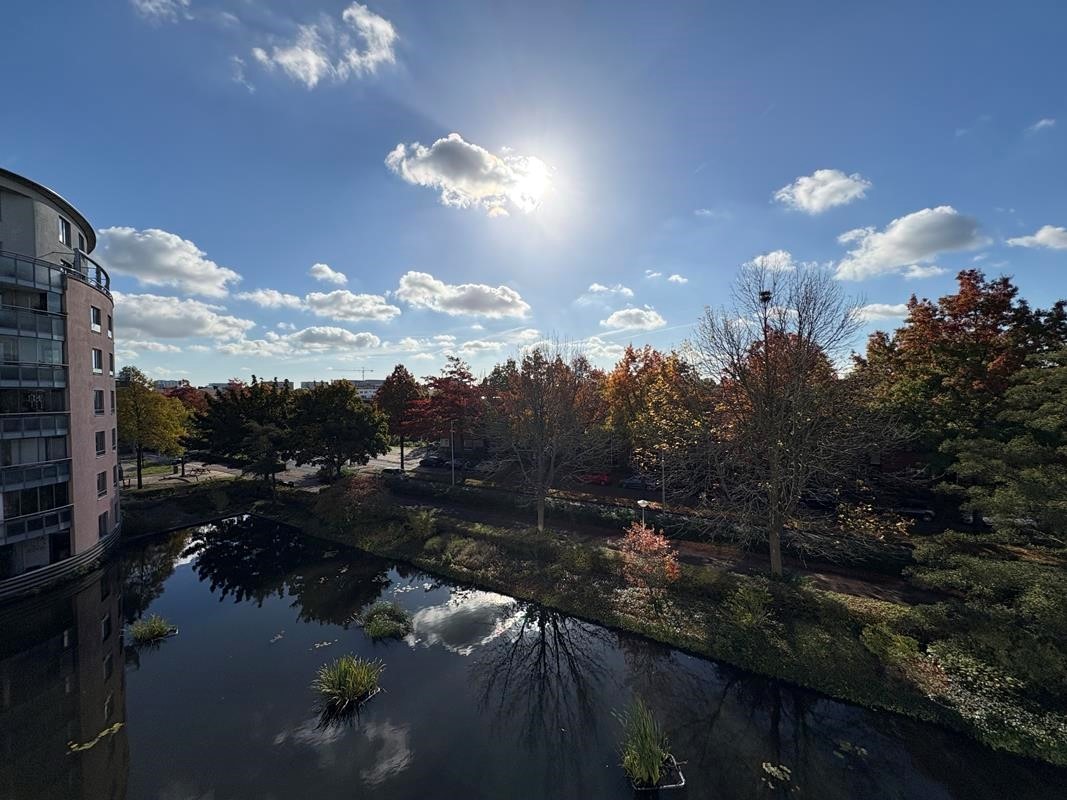 The south-facing balcony offers a lovely sunny spot with a view over the pond at the front!