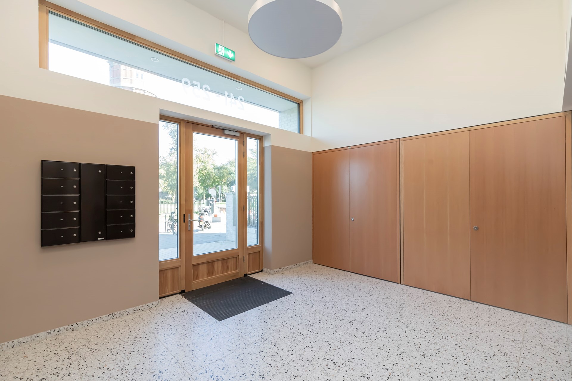 The arterial roads to Schiphol (A10/A4) and Utrecht (A2) can be reached in no time. The connection to public transport is also very well organised: Spaklerweg metro station and Amstel train station are within walking and cycling distance. You can reach Watergraafsmeer, the Rivierenbuurt or De Pijp within a few minutes by bike, but you can also easily reach the center by bike or metro.