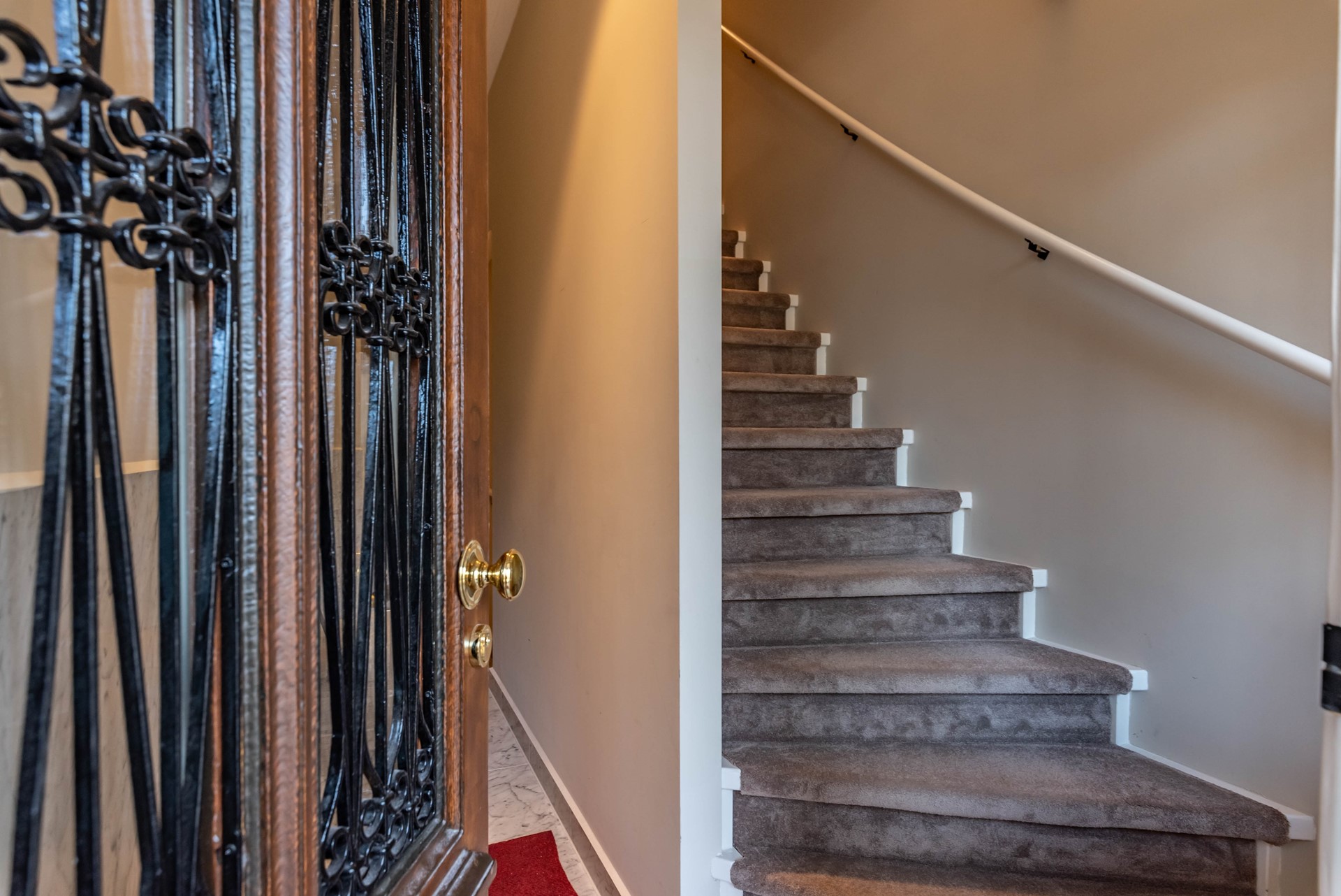 On the third floor, you will enter apartment F. Once you set foot in the hall of the apartment, you instantly sense this can be a place to feel at home. The hallway gives access to the living room, a separate toilet with fountain, decorated in marble, and the staircase to the fourth floor.