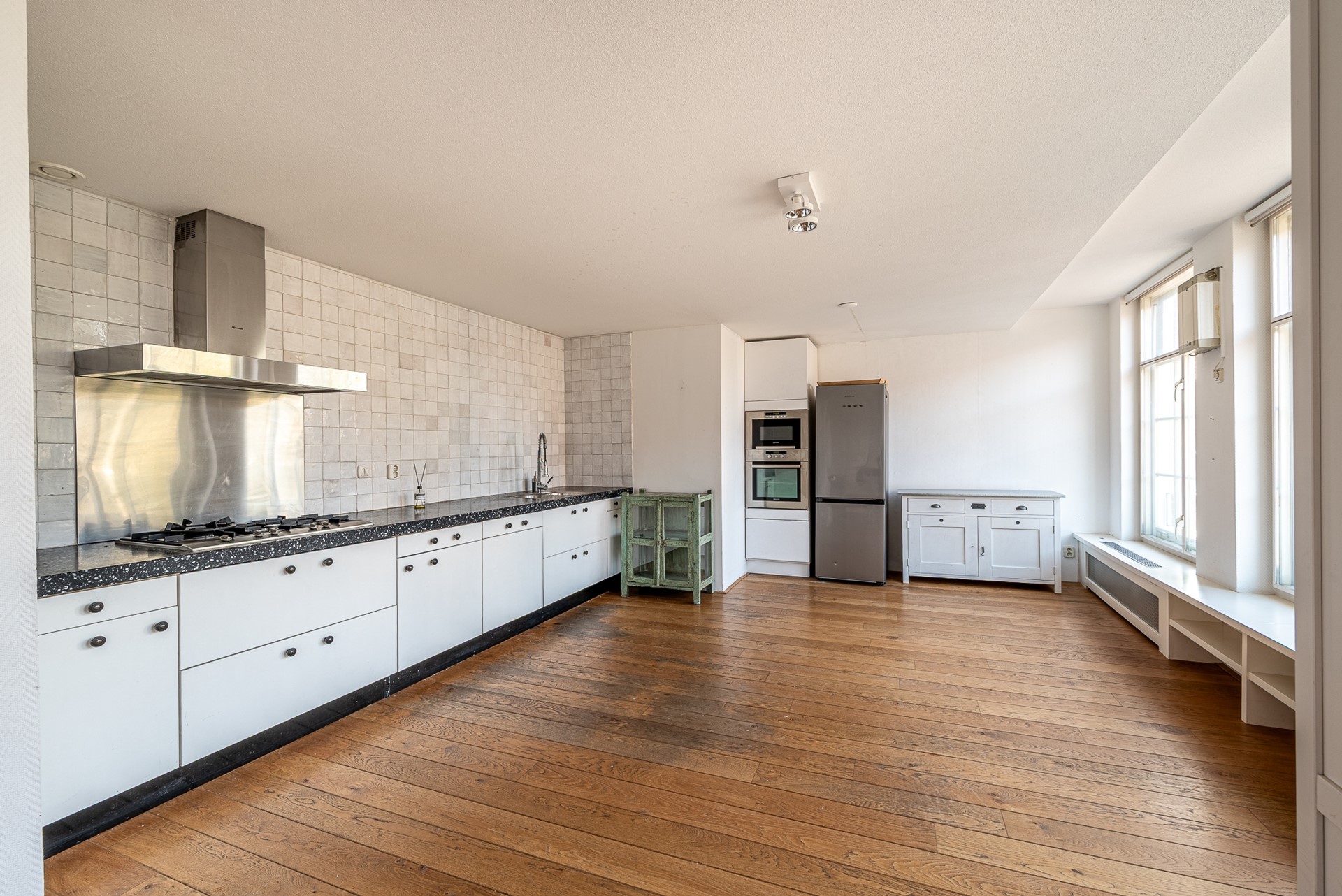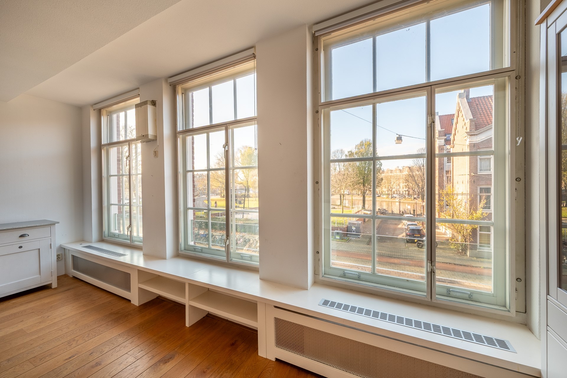 The property is located in the western part of the Jordaan, just around the corner from Lindengracht and Westerstraat. Westerpark is nearby as well, a hotspot for cultural events such as the Sunday Market and Rollende Keukens, but also perfect for picnics, drinks on a terrace, or a relaxing walk. The Haarlemmerbuurt, with its wide range of boutique shops and restaurants, is also within walking distance. The unobstructed views over Marnixplantsoen, the Singelgracht, and Nassaukade at the front, combined with the sweeping views of the Palmgracht and De Driehoek (a charming, authentic part of the Jordaan) at the rear, make this a truly unique home in the city center.