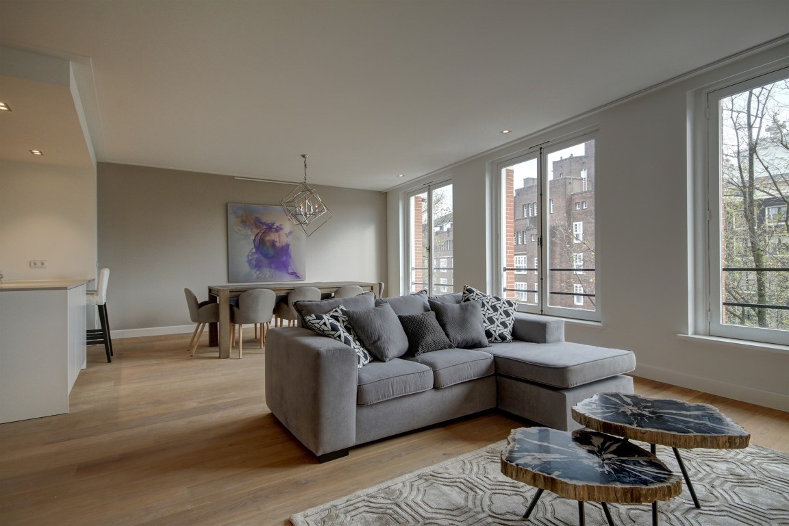 On one of the most beautiful canals in the Center of Amsterdam we offer a fully renovated high standard 03 room apartment of 130 m2 with 02 bathrooms and elevator which is hidden behind a beautiful historic facade from the 19th century. This monumental building has a fantastic view over the Canal and onto the former City Hall which is known as the Grand 5 star Hotel. This exceptional accommodation is realized under architectural qualities, and only the best materials have been used to renovate and finish this residence to offer full comfort.