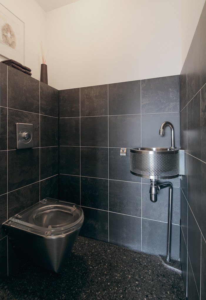 • Modern Amenities: The property includes a utility room equipped with a separate washer and dryer, ample storage, and natural light. The stylish bathroom features contemporary metal and tile finishes, complemented by a separate toilet.