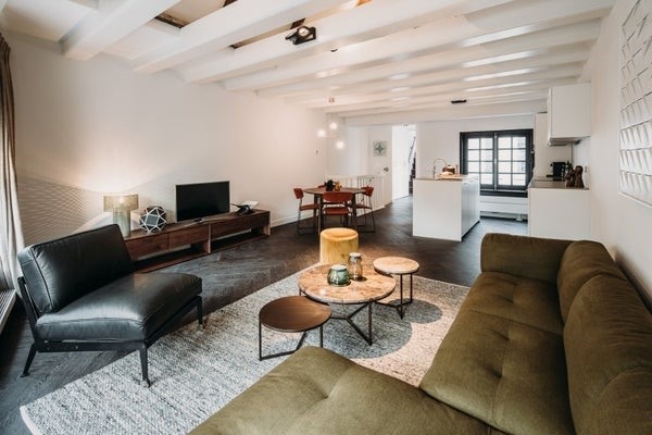 High end furnished 2-bedroom apartment of approx. 80 m2. The furnished apartment is striking thanks to the use of colours and rich materials according to the latest housing trends. The open kitchen features built-in appliances such as a dishwasher, oven, refrigerator with freezer. In addition, all household appliances are present, such as Nespresso, juicer and all other kitchen necessities. The spacious bedroom with a lovely Queen bed has a luxurious bathroom adjacent to it, featuring washstand and walk-in shower. The apartment is located in an amazing apartment complex. In short; the luxury of a hotel with a homely and comfortable atmosphere.