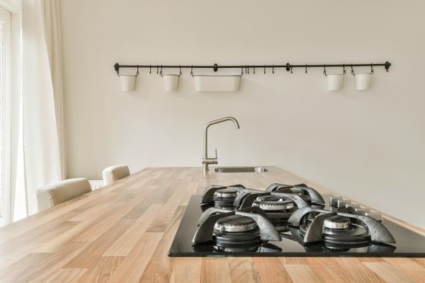 At the rear, you will find the luxury kitchen with cooking island, equipped with all desired built-in appliances, including a dishwasher, fridge with freezer compartment, coffee machine, and a 5-burner gas stove.
