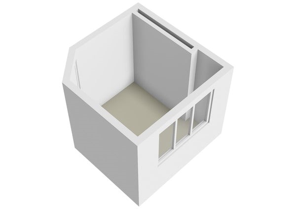 Bedroom adjacent to the kitchen with space for a double bed. Balcony overlooking the quiet courtyard, facing north, accessible through French doors from both the kitchen and bedroom.