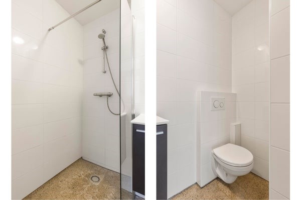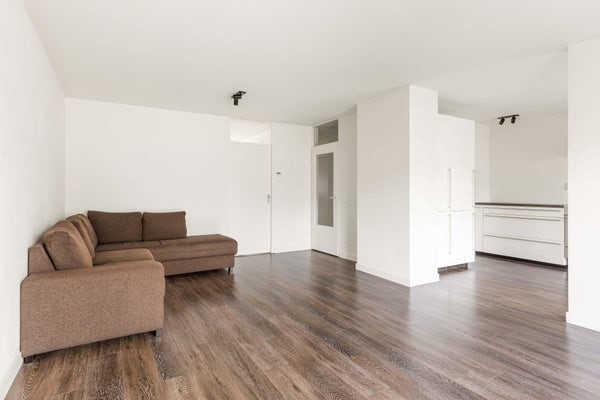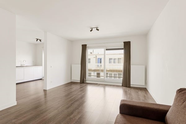 Through the entrance and hall you enter the apartment. The spacious and bright living room with dining area offers access to the sunny balcony across the entire width of the house. The semi-open kitchen is modern and equipped with various built-in appliances. The apartment has a spacious bedroom, also bright and with sufficient space. The bathroom is equipped with a walk-in shower, a modern washbasin cabinet, and a toilet. Furthermore, there is a practical indoor storage room. A bike storage is available in the building.