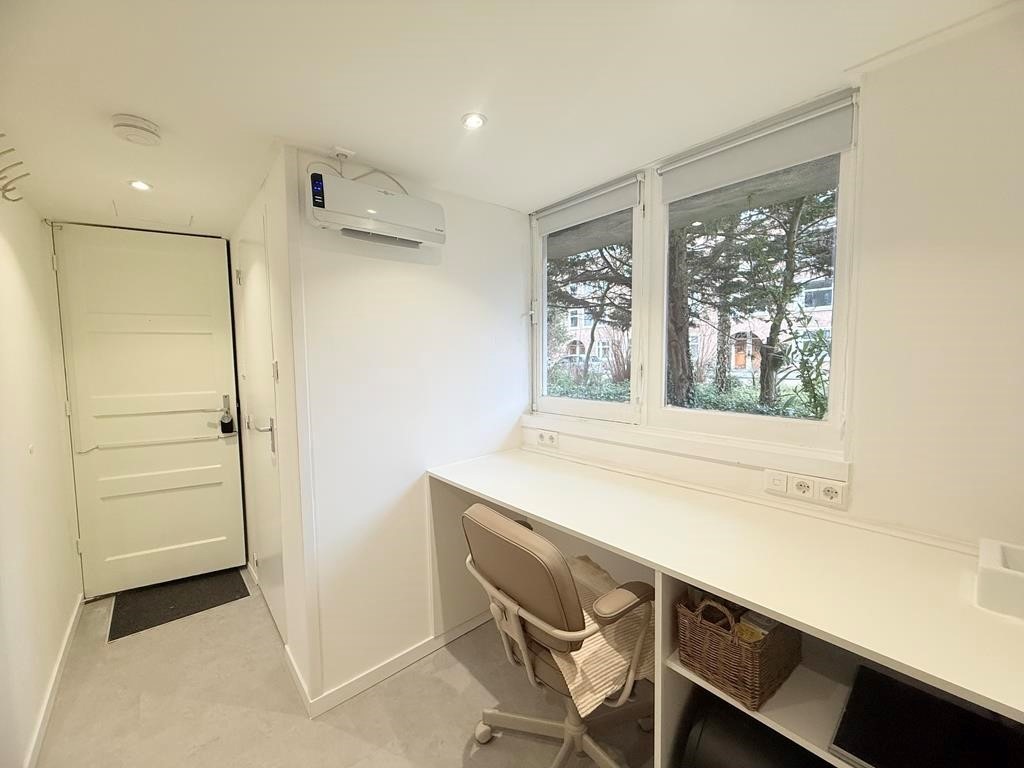 On the ground floor, the former storage has been fully renovated into a self-contained studio, completed with a second bathroom, heating, a fridge with freezer compartment, and a sofa bed for guests. This versatile space is ideal as a home office, guest accommodation, or for couples who both work from home and prefer separate areas.