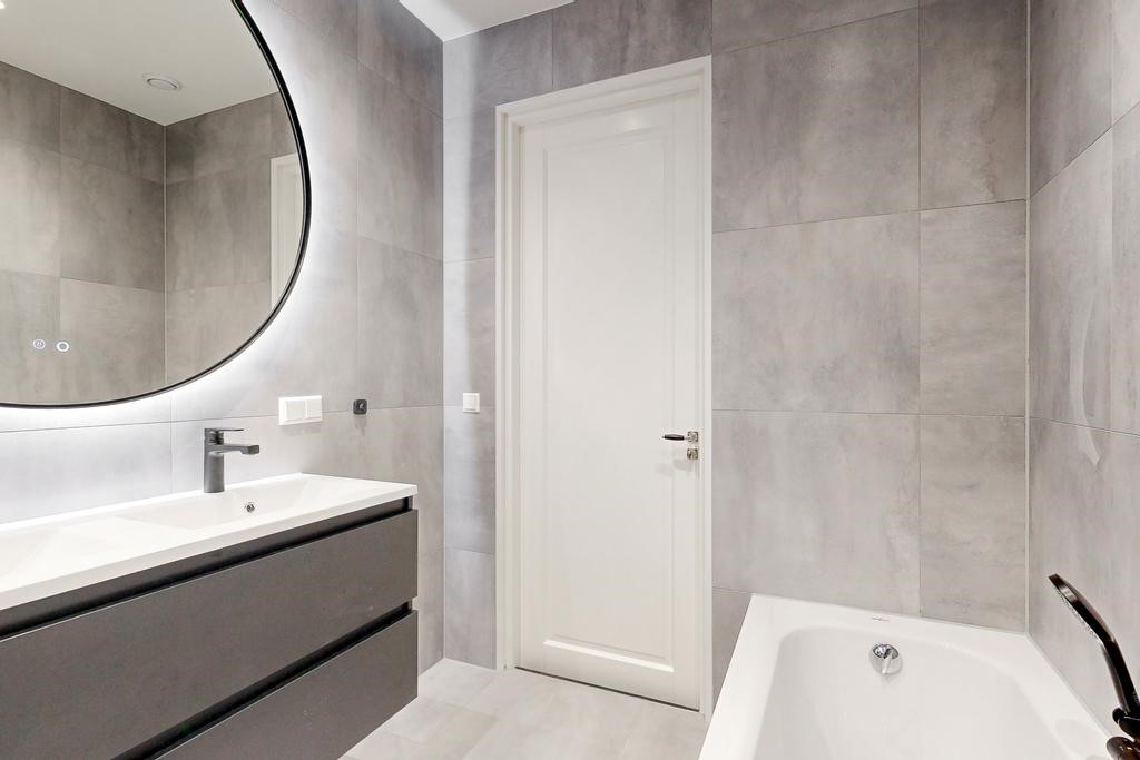 Via the communal stairwell you will enter the apartment at the 1st floor, hallway with separate toilet, bright living at the front with cosy balcony, luxury open kitchen with bar part and all appliances you wish for: dishwasher, combi oven, wine fridge, quooker, induction stove and fridge, spacious master bedroom with fitted wardrobe, desk area and access to the sunny South facing balcony, second single person bedroom also with fitted wardrobe, desk area and at the quiet the rear side of the apartment, spacious bathroom with bath, walk in shower, double sink, heated mirror and second toilet, separate storage/laundry area with washing machine and dryer