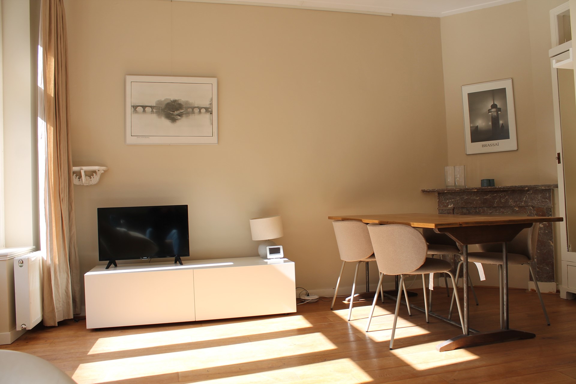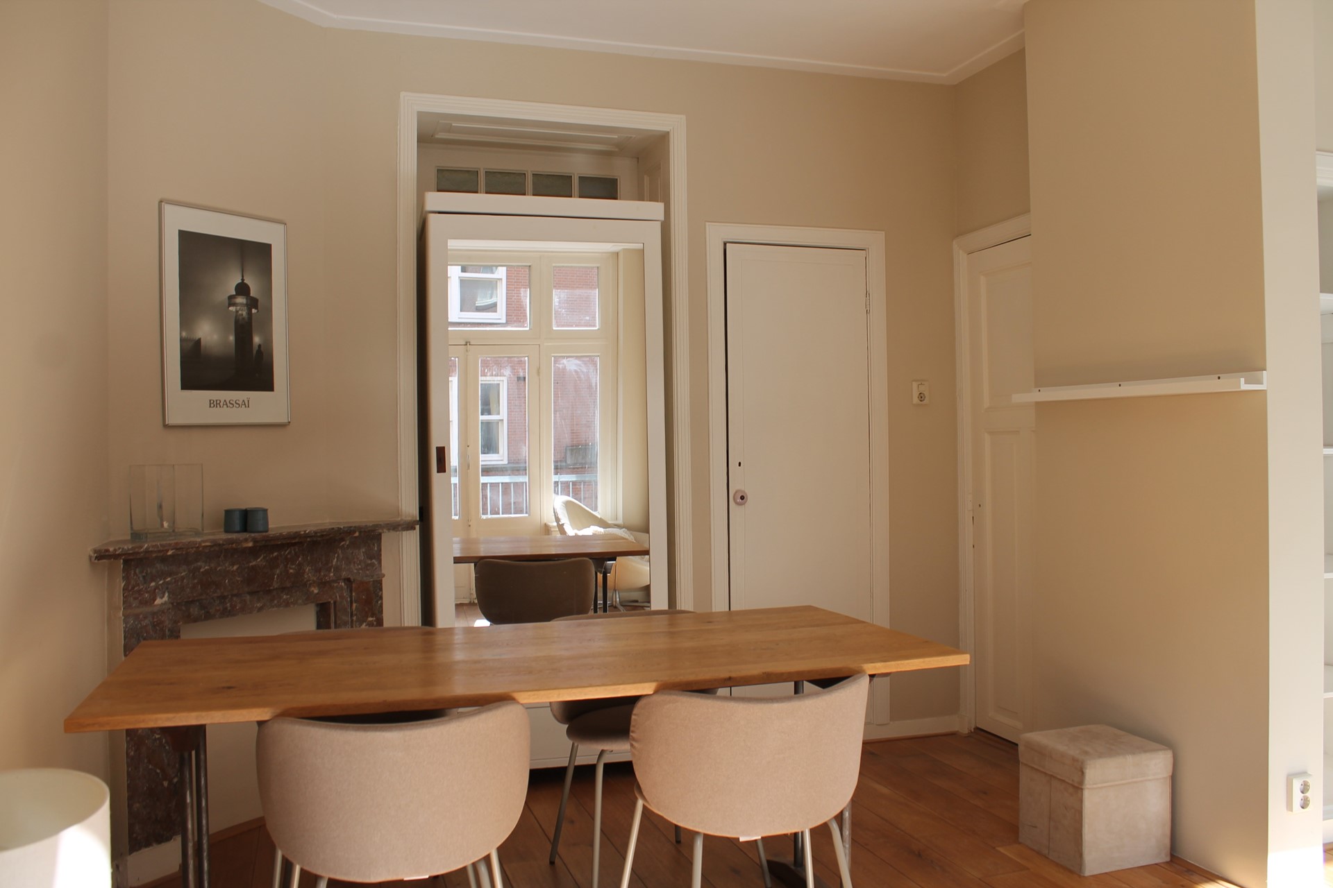 On the first floor of a classic, stately building, you will find this characteristic one-bedroom home. The living room has tall windows with a charming French balcony facing the street. Open those doors, relax outside, and watch the bustling street life. At the rear, the spacious bedroom borders the sunny balcony, where you can enjoy coffee, a glass of wine, or a good book in the sun in the morning or after work.