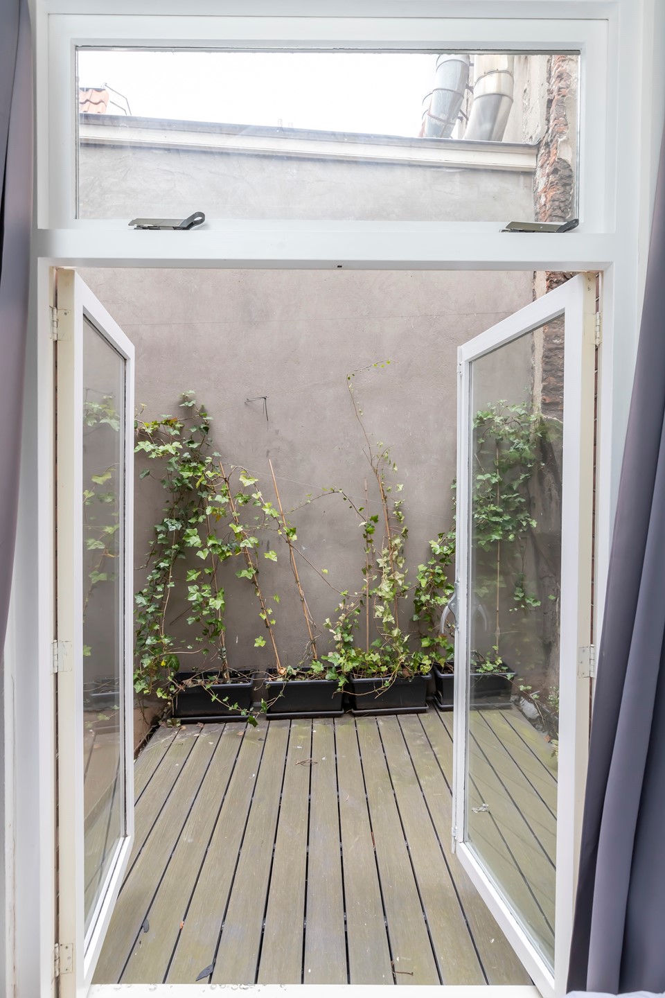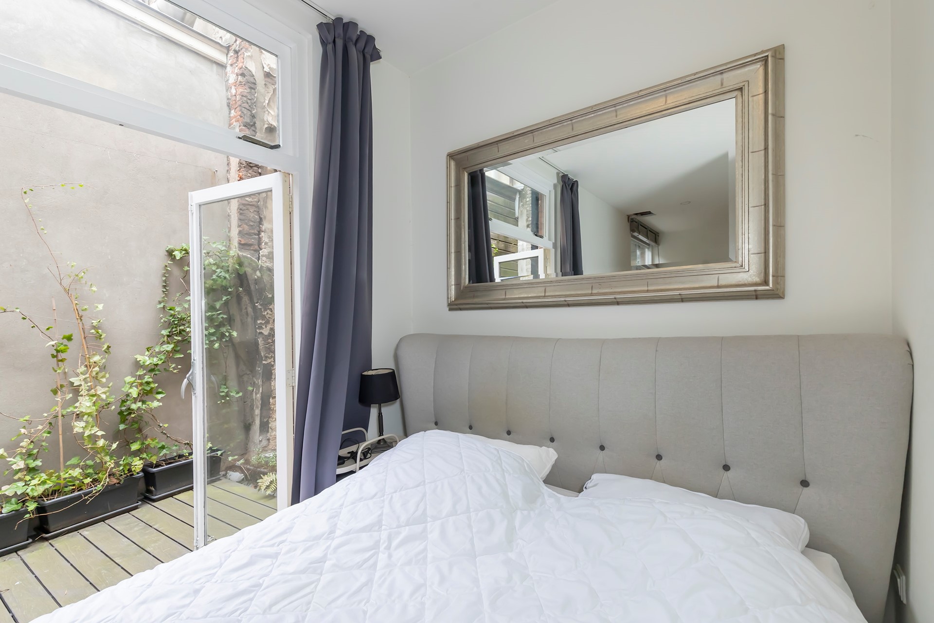 The bedroom is situated at the quiet backside and is equipped with a comfortable double bed, plenty of built-in wardrobe space and access to a second outside space.