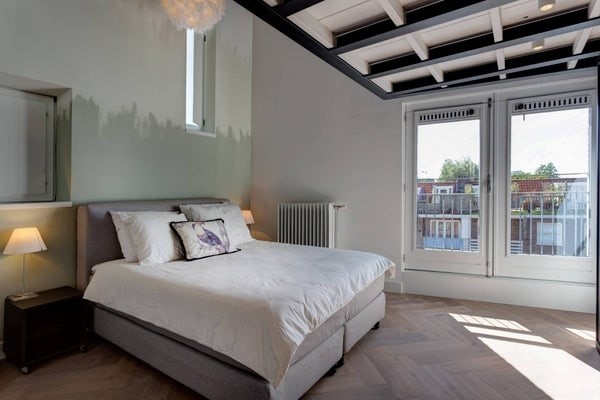 Spectacular apartment in the Hoofddorppleinbuurt of Amsterdam, 115 SQM, two bedrooms and a roof terrace in beautiful a monumental building.