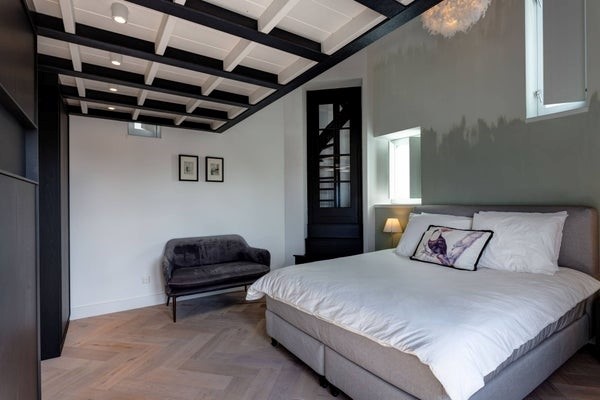 This is a stunning apartment with a good size master bedroom and a separate guest bedroom. Not suitable for kids. Ideal for a couple or a single professional who loves the vibe of a luxury apartment with a large balcony facing the Sloterkade, and as an extra feature has a gorgeous roof terrace looking out over Amsterdam!