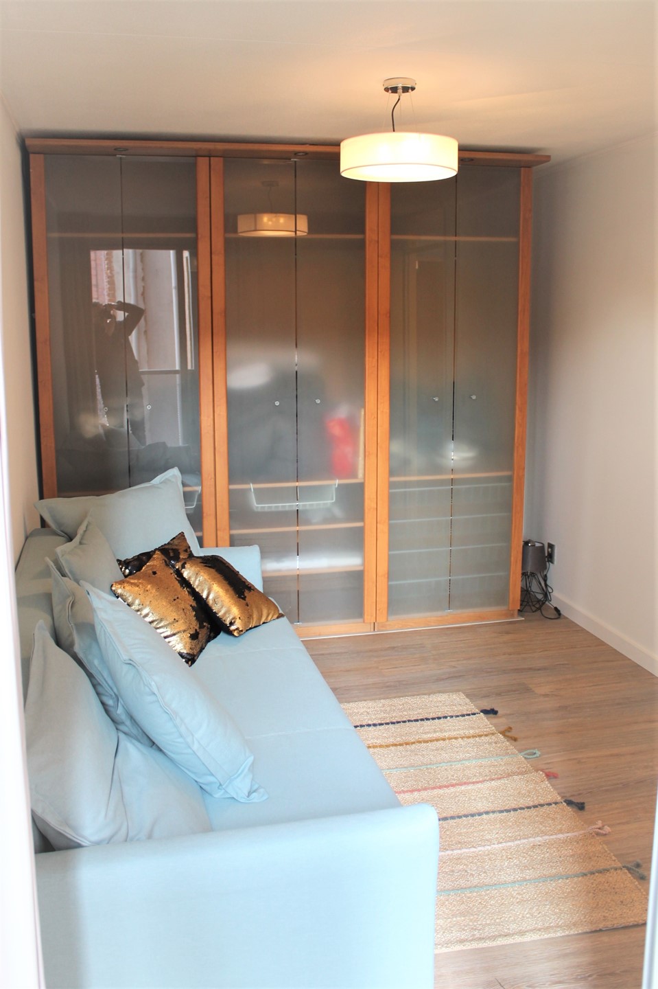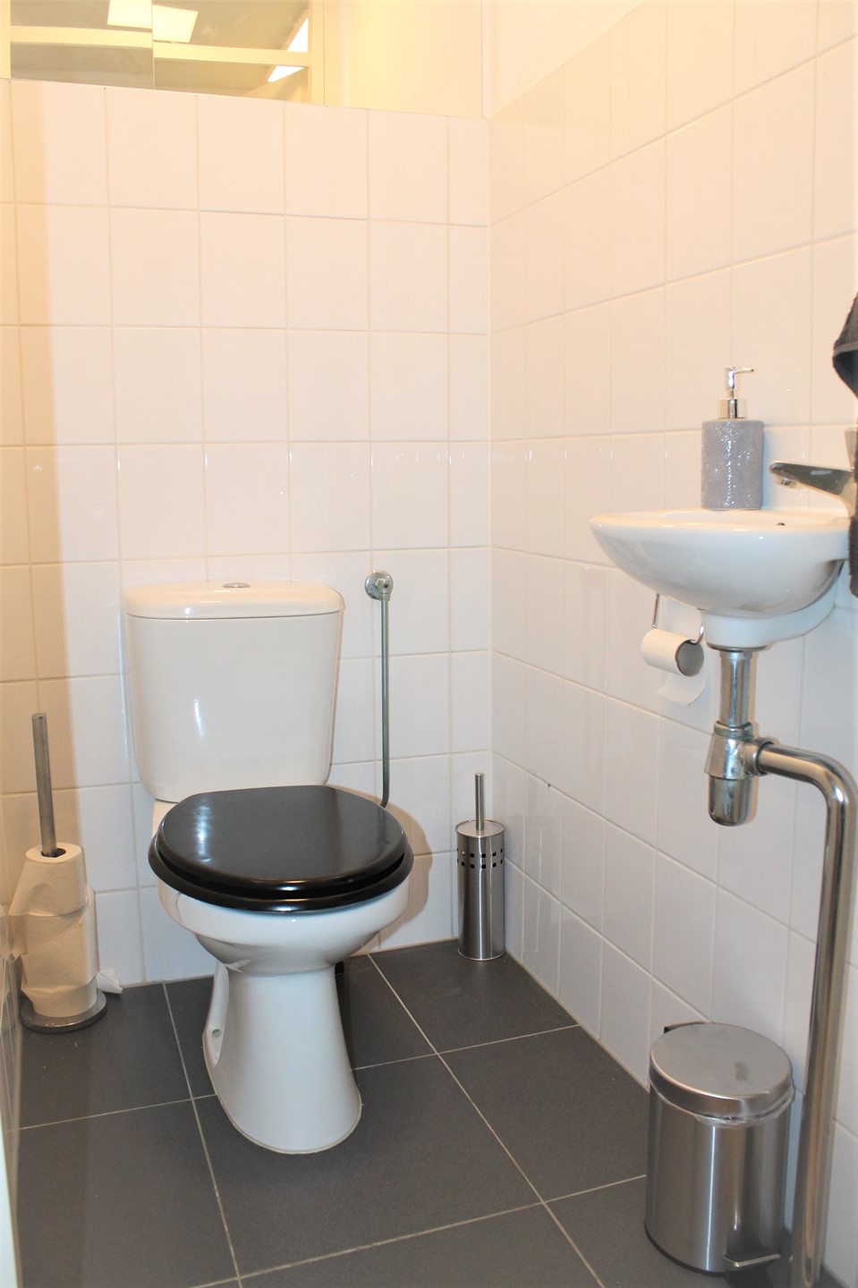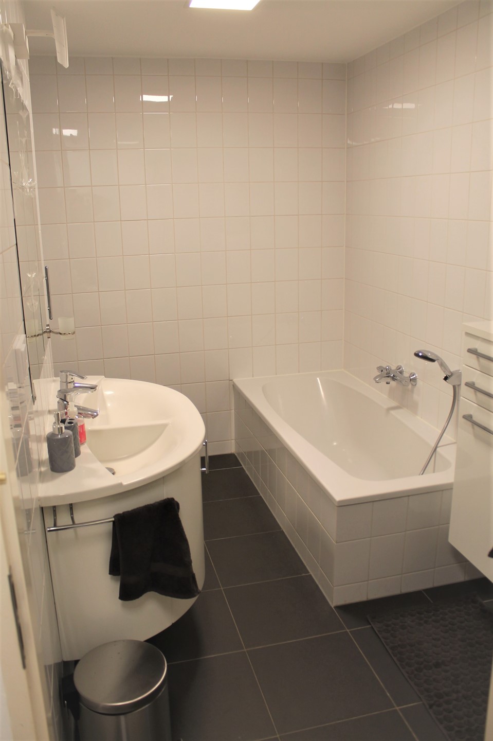 Common entrance on the ground floor, hall with elevator. Private entrance on the second floor. Hall with C.V.-room with washingmachine and dryer. Separate toilet. Spacious bedroom with closet and access to small balcony facing West with afthernoon and evening sun. Second spacious bedroom with closet wall. Bathroom with separate shower and bath and double sink.