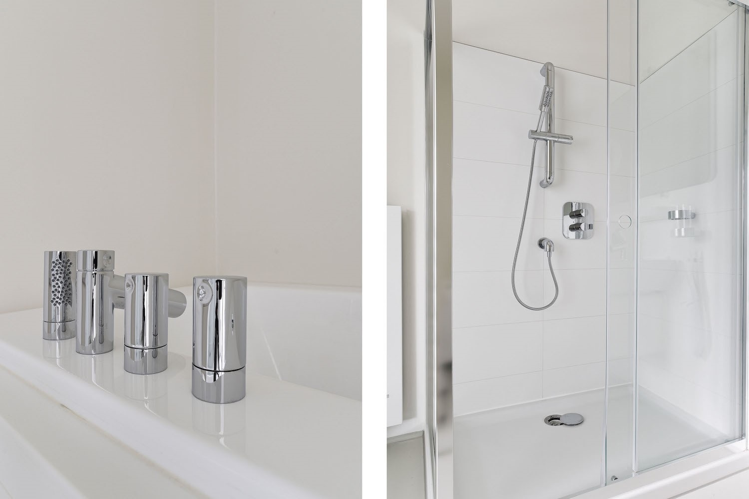 The Urban Residences are of an unprecedented high level of finish. The impressive design kitchen by Alessi/Valcucine with built-in appliances (dishwasher, refrigerator, freezer, combi-steam oven, induction hob and extractor hood) from quality brand Miele appeals to the imagination. It goes without saying that the kitchen is fully furnished in style with all the necessary crockery, utensils and glassware.