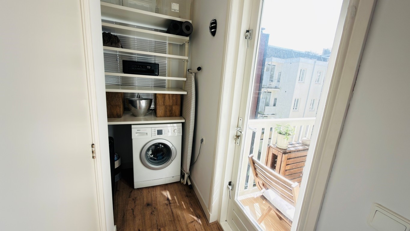 We offer a bright spacious fully furnished double upstairs apartment of approx. 65 m2 with a South facing sunny balcony in the hip & happening Staatsliedenbuurt. The apartment is located on a quiet road very close to the Westerpark where you will find cozy restaurants, enjoy great walks and visit a market or festival. The apartment has been renovated and offers full comfort as in a fully equipped kitchen and luxurious bathroom.