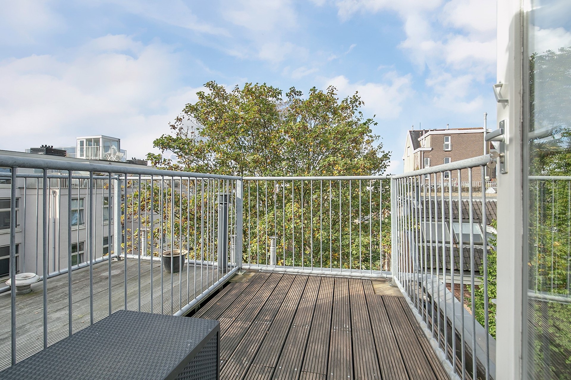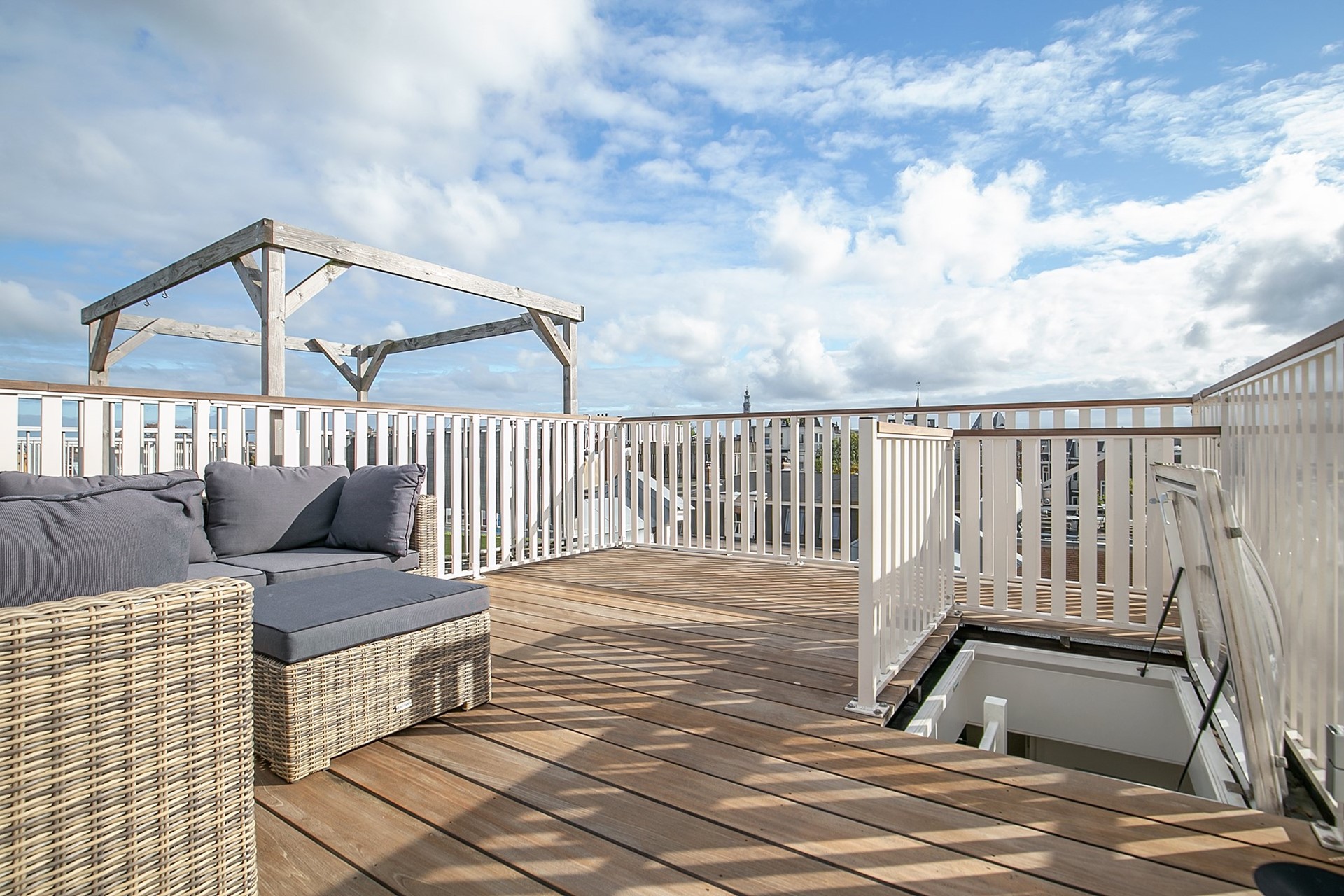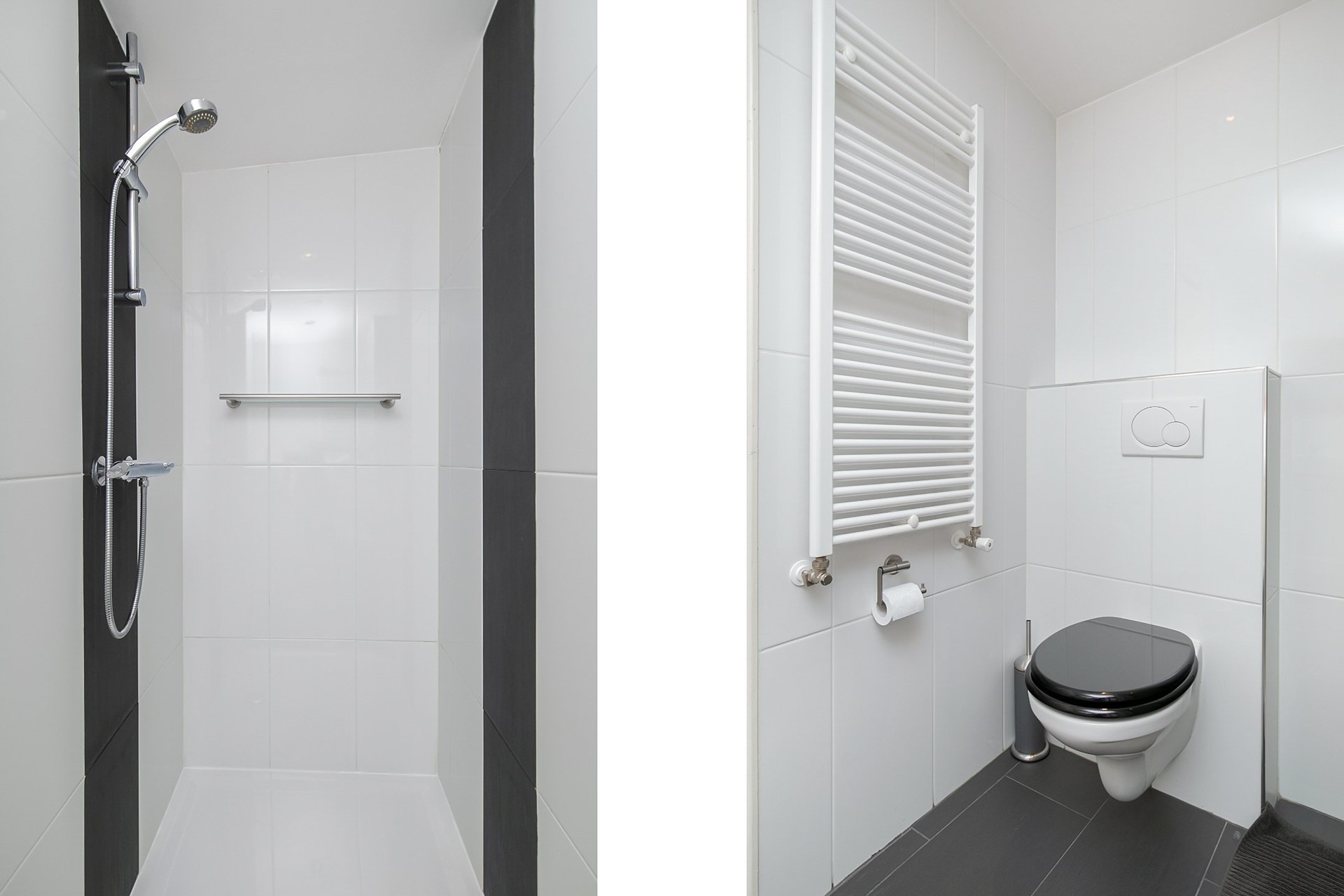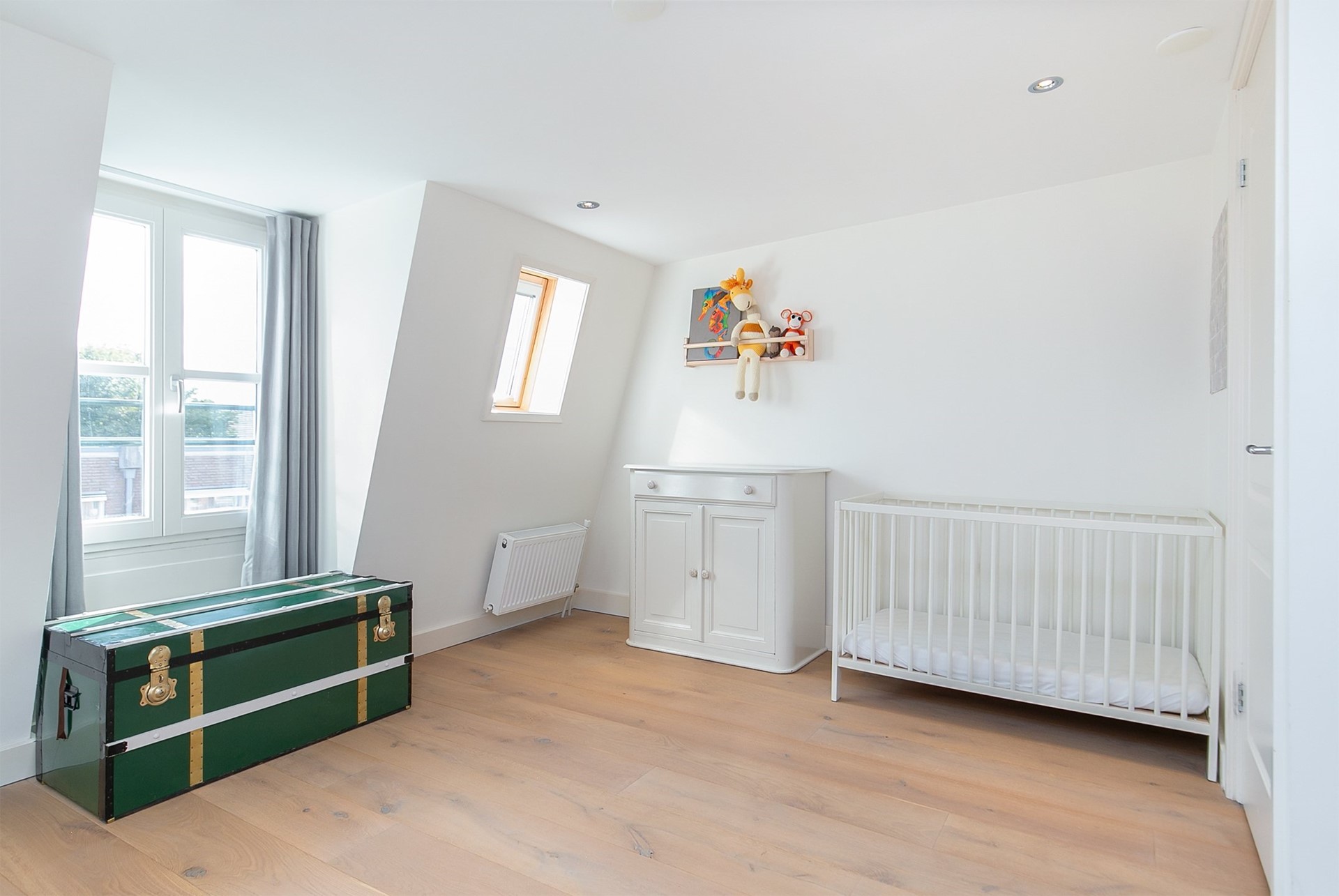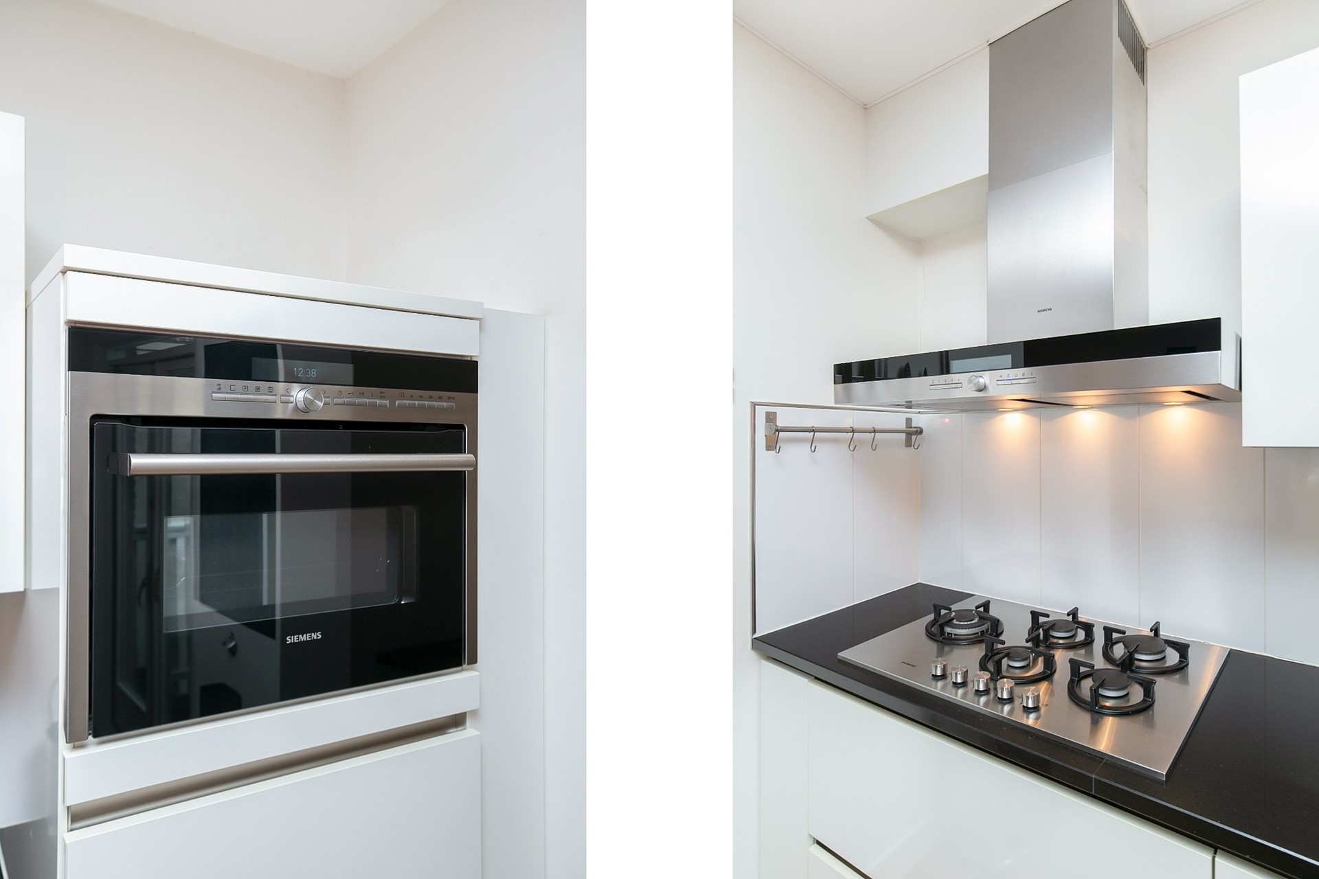 Shared entrance on the ground floor. Through the stairs access to the apartment on the third floor. Partly due to the current layout, the house is very light and the house has a beautiful oak floor. At the rear is an open kitchen. The neat, neutral kitchen is equipped with a fridge and freezer, a 5-burner gas hob, extractor hood, dishwasher and combi-oven. Next to the kitchen is a extra room what is now used as a study.