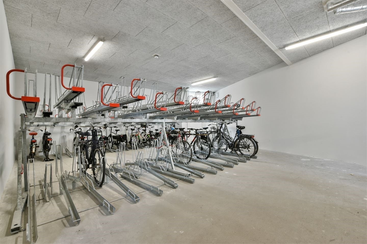 The entire complex consists of 112 apartments and is fully equipped. A parking garage (additional of €100,00) underneath the complex (reachable with elevator as well), a spacious bike storage and extra private storage room. equipped with cupboards and electricity. A handy magnetic card system is used for the central entrance and parking garage.