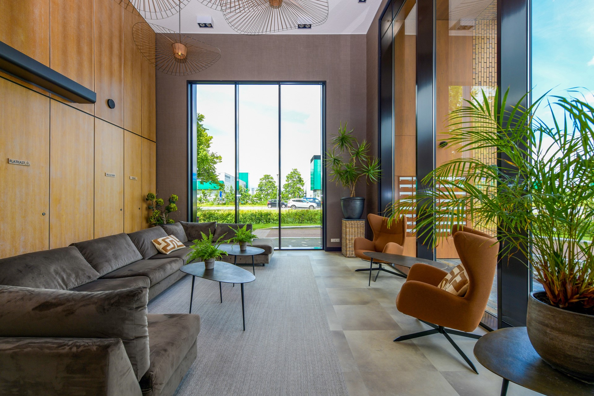 Via de gezamenlijke entree bereikt u de liften die toegang bieden tot de etages. Het appartement ligt op de 15e verdieping.