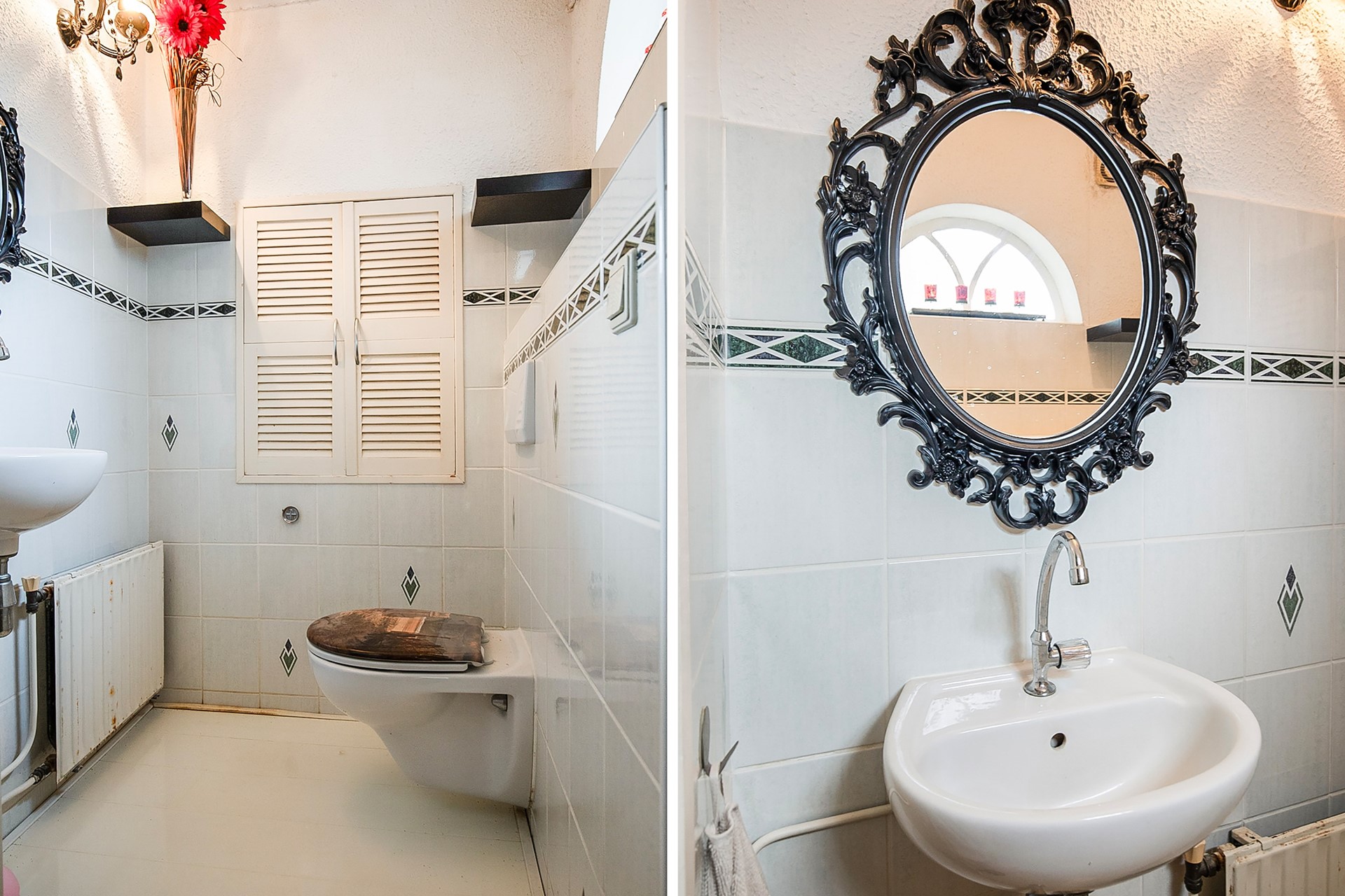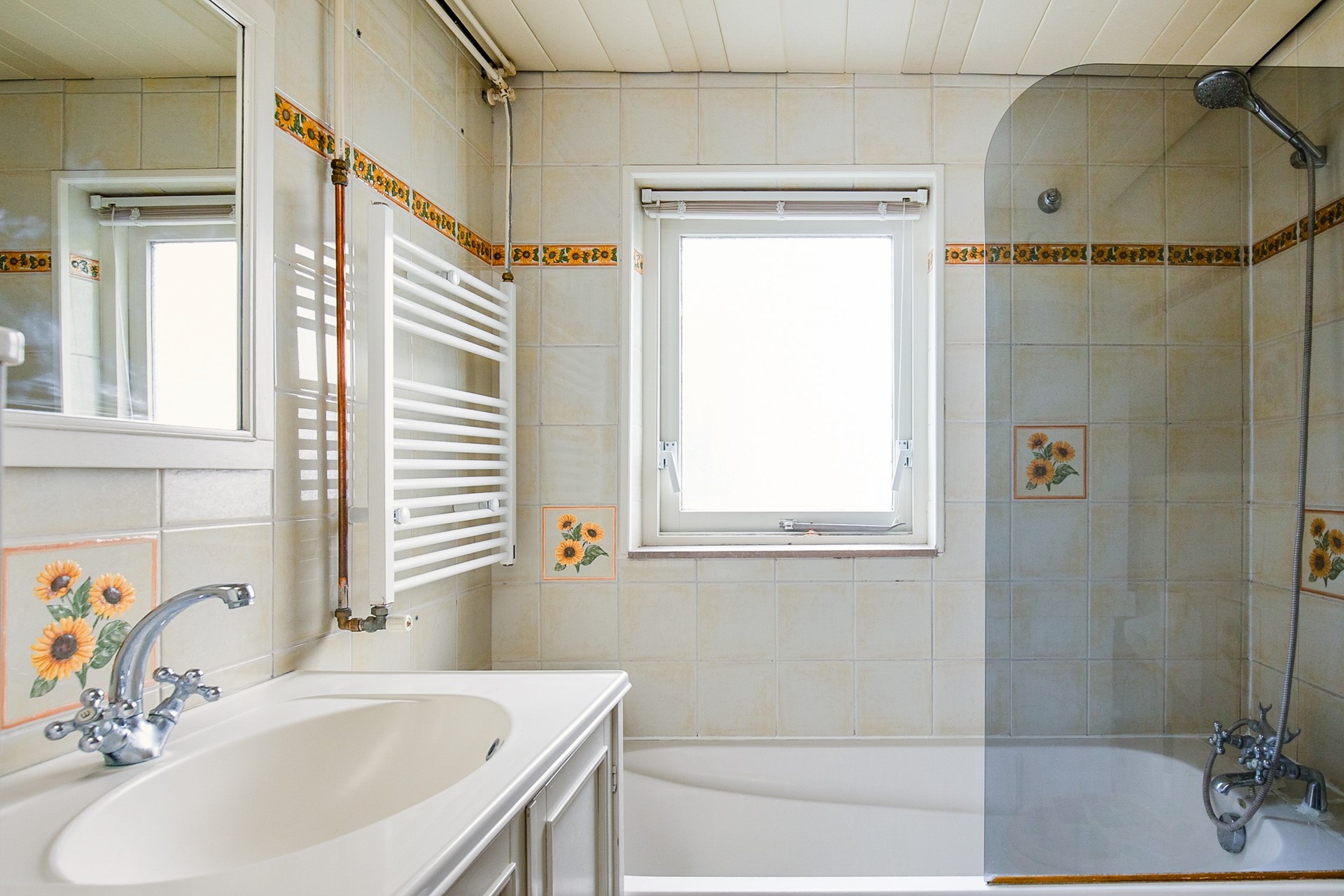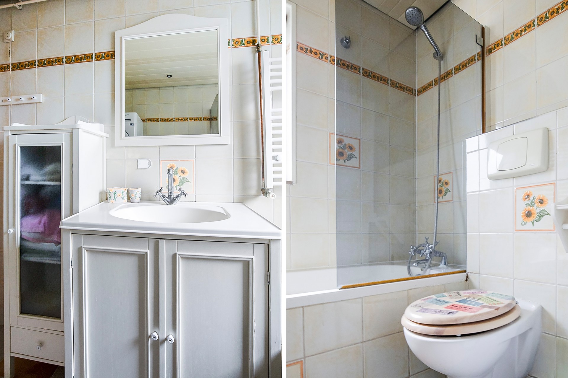 The bathroom has a bath (with shower), a second toilet, washbasin and connection for the washing machine and a dryer.