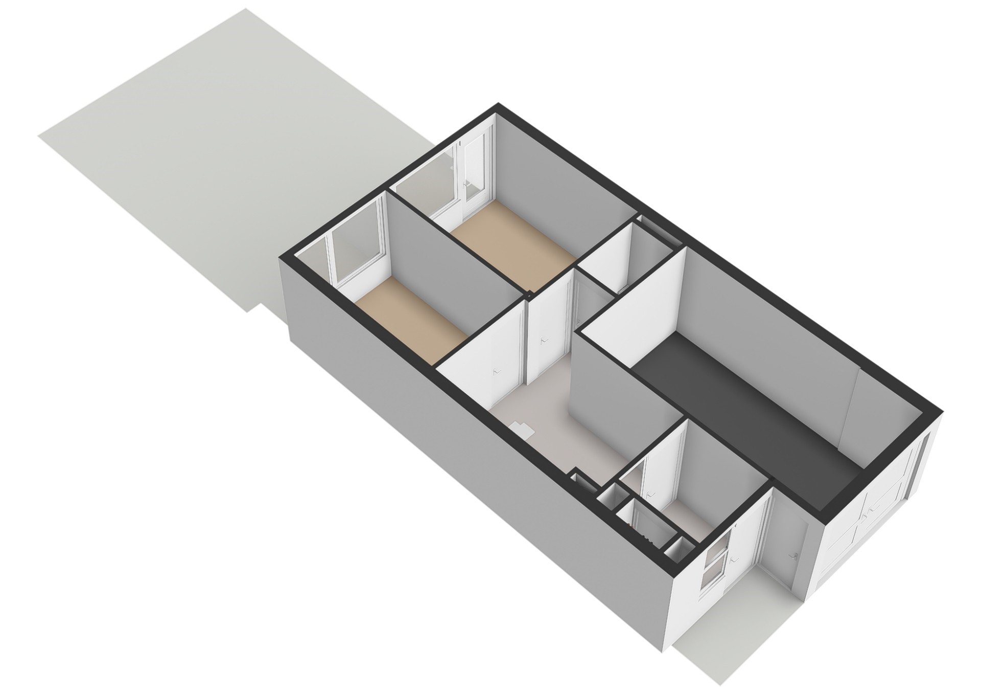 Entrance, spacious hallway with access to two (bed)rooms and/or practice space and the large, sunny backyard. Separate boiler room. Garage, accessible only from the outside.