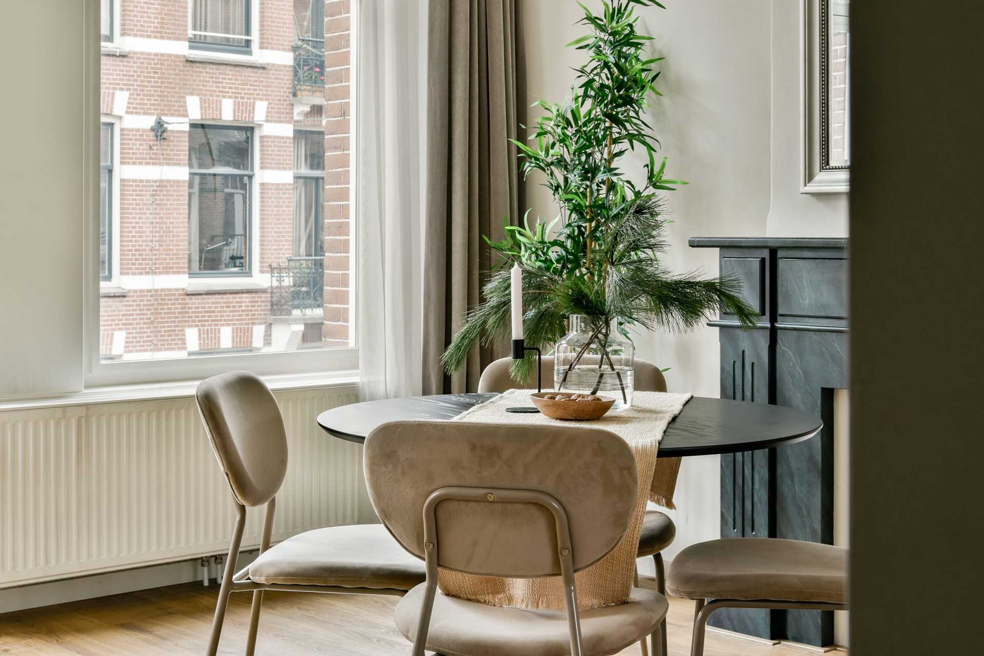 The apartment is situated in a desirable location between the Bilderdijkstraat and the canal district, within walking distance of Vondelpark and Amsterdam city center.