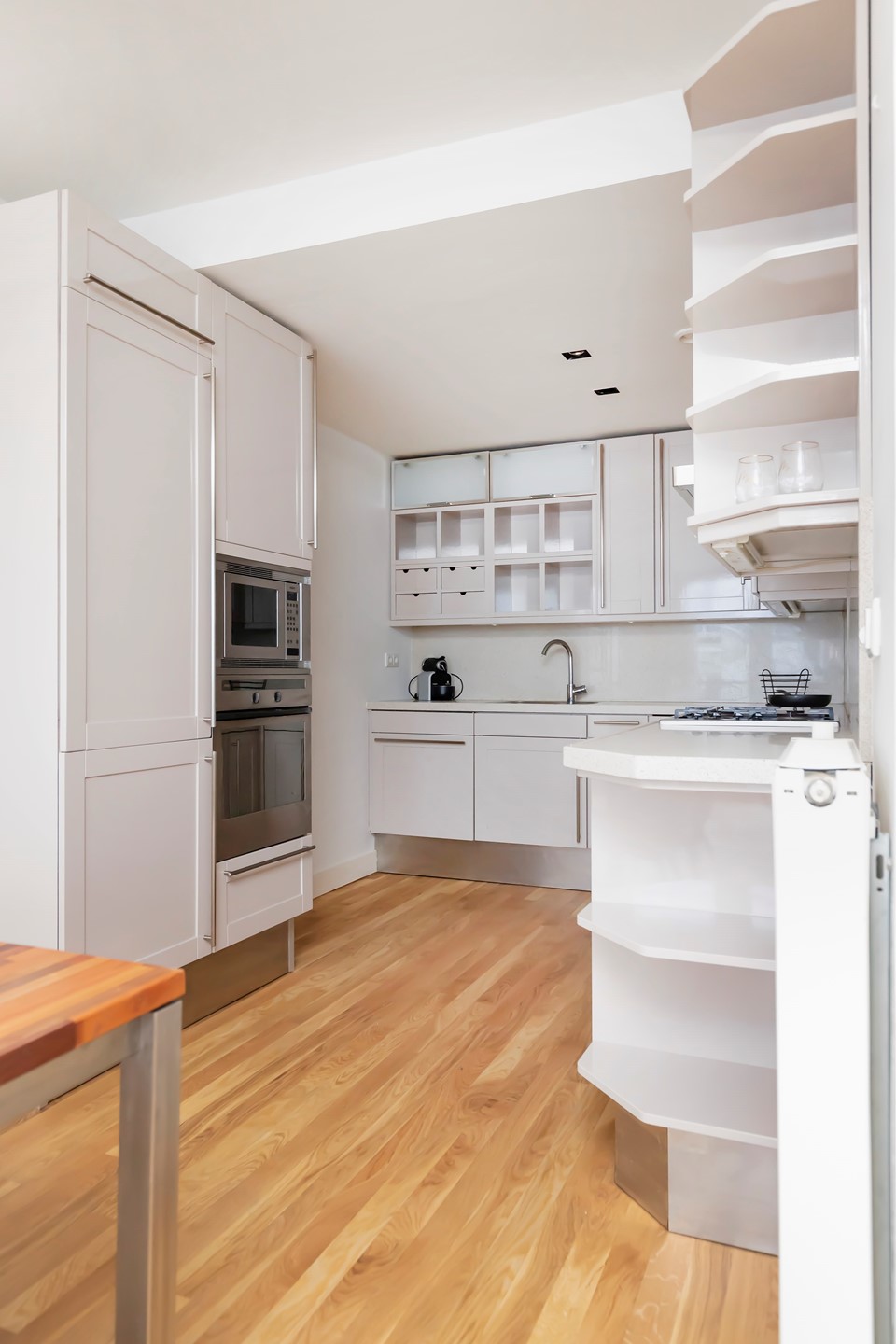 Entrance via the monumental main entrance and glass atrium; private front door on the first floor. Hall with cloakroom and guest toilet. Wide living room with abundant natural light and French doors to the balcony facing the sheltered courtyard. (Semi-)open kitchen with built-in appliances.