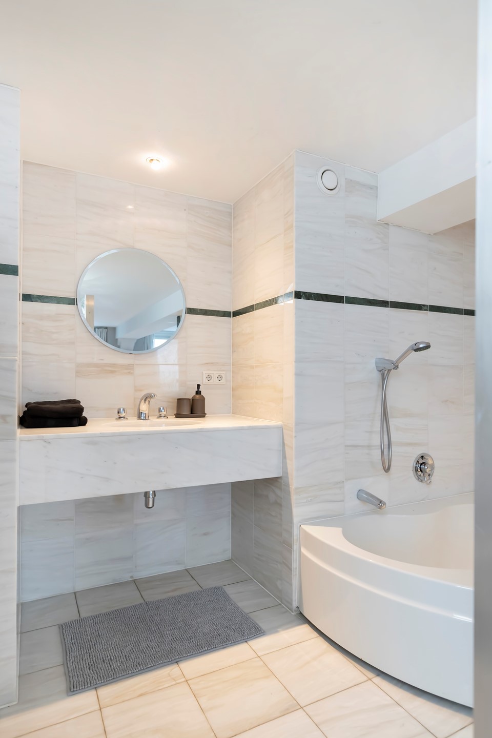 Living in a stately former bank building with international allure: Charming maisonette of approx. 112 m² on the first and second floors of the prestigious “Den Grooten Heer” complex. The apartment offers a generous, light-filled living room with balcony overlooking the landscaped courtyard, a modern (semi-)open kitchen, two bedrooms each with its own en-suite bathroom, and three toilets in total. Residents enjoy exceptional on-site facilities: an indoor heated swimming pool, sauna, gym, communal terraces, caretaker, and two lifts.