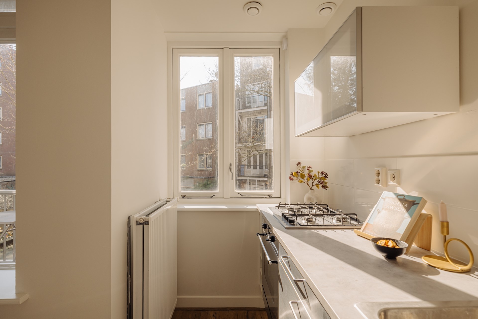 Licht en goed onderhouden 2-kamer appartement met ruim balkon op het zuiden, op een rustige locatie midden in de levendige Indische buurt in Amsterdam Oost! Via het trappenhuis betreedt u de woning op de eerste verdieping. De lichte woonkamer is gelegen aan de achterzijde van de woning. De halfopen keuken is via de woonkamer te betreden, met diverse inbouwapparatuur zoals oven en gaskookplaat. Badkamer met toilet, inloopdouche en wastafel. De ruime slaapkamer bevindt zich aan de voorzijde van de woning.