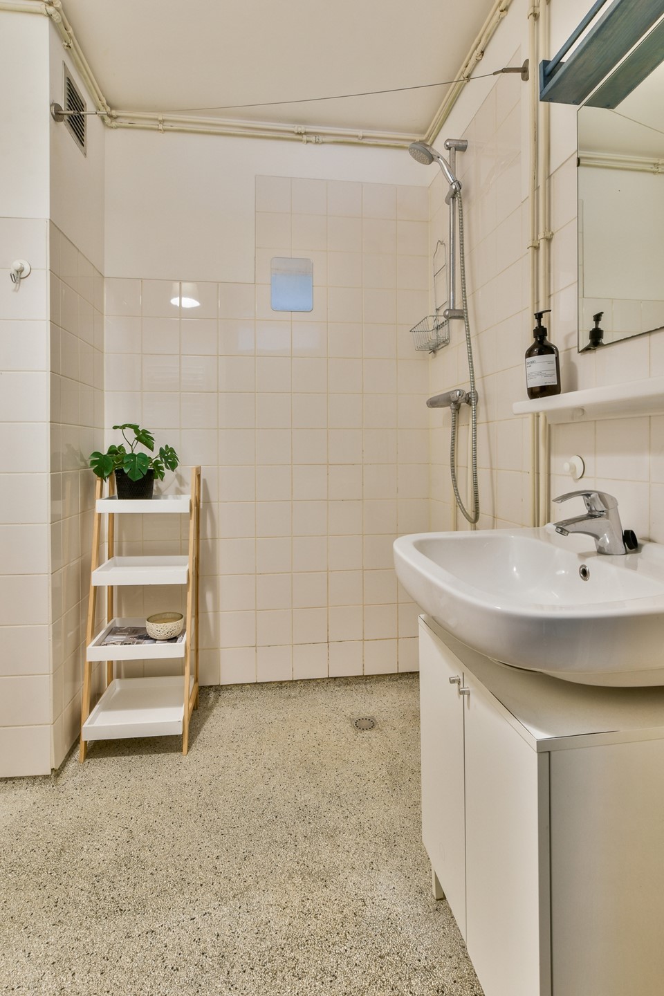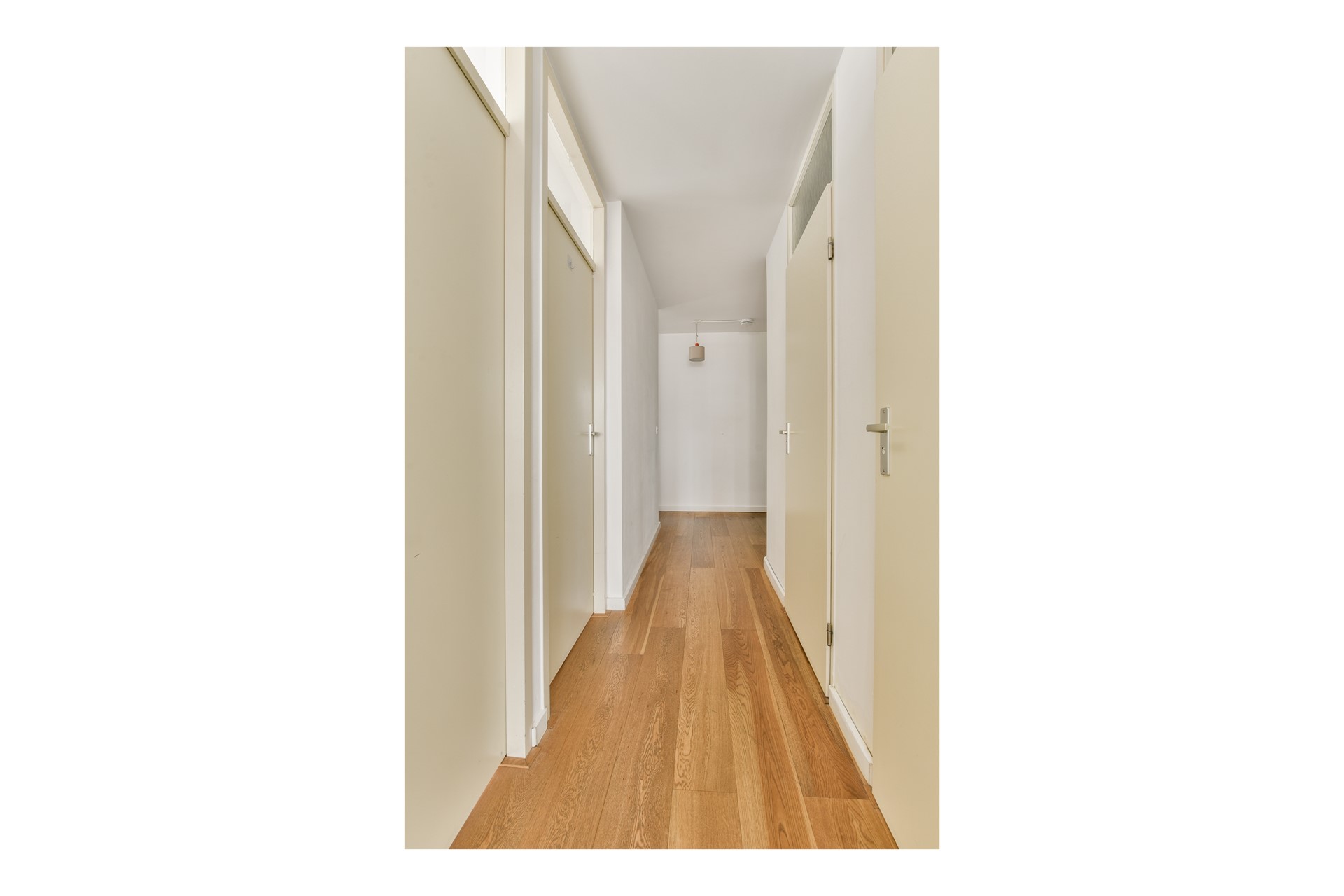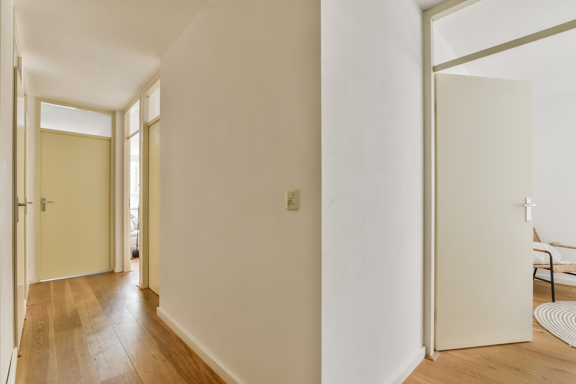 Thanks to its corner position, the living room enjoys an abundance of natural light and a pleasant sense of space. The kitchen, renovated in 2015, is modern and equipped with (built-in) appliances including a fridge-freezer, oven, dishwasher, and extractor hood. From the kitchen, you have access to the west-facing balcony, perfect for enjoying the afternoon and evening sun.