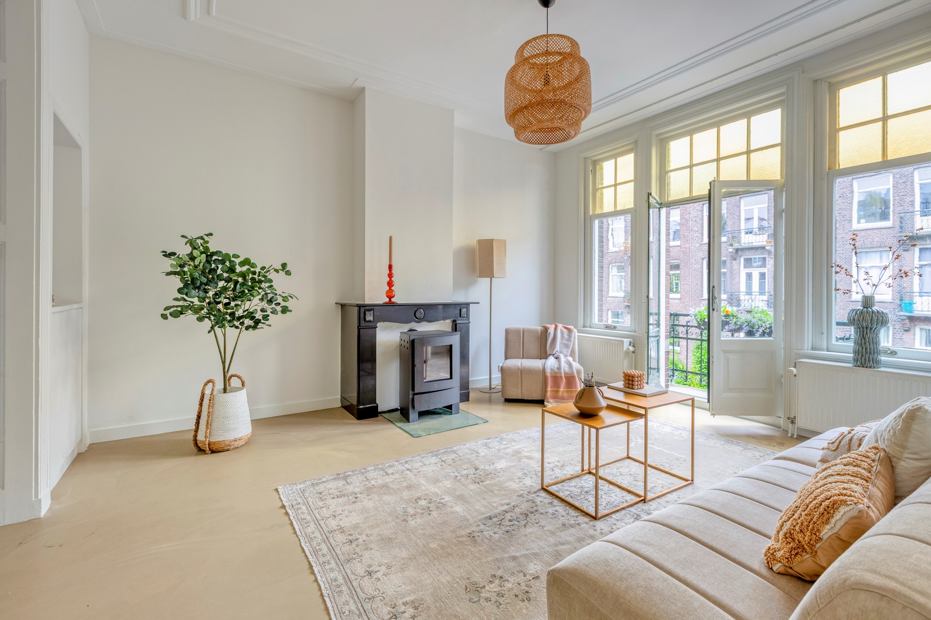 Spacious, bright, and charming apartment on the top floors of a characteristic building dating from around 1913 and nicely situated on one of the most beautiful streets in Watergraafsmeer, all located on private land so no land lease!
