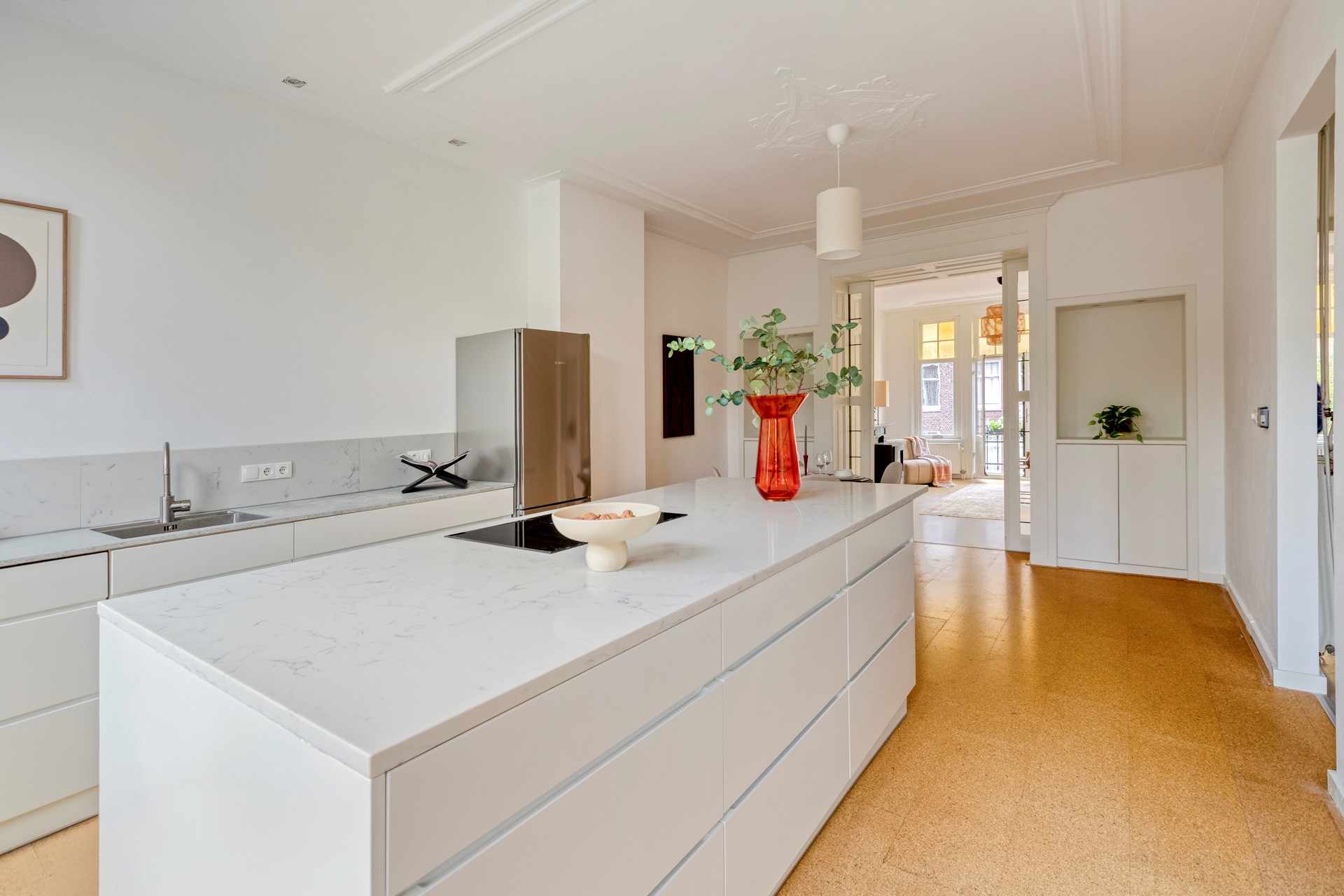 Het pand is uitzonderlijk breed (ca. 6,5 meter), wat in alle vertrekken voelbaar is. Op de leefverdieping bevindt zich een prachtige woonkamer en-suite, een moderne open keuken met kookeiland, een werkkamer en veel bergruimte. De derde verdieping biedt maar liefst vier ruime slaapkamers, een luxe badkamer en eveneens veel opbergruimte. De vierde, tevens bovenste verdieping, gerealiseerd in 2017, beschikt over een lichte kamer met aan beide zijden toegang tot een dakterras.