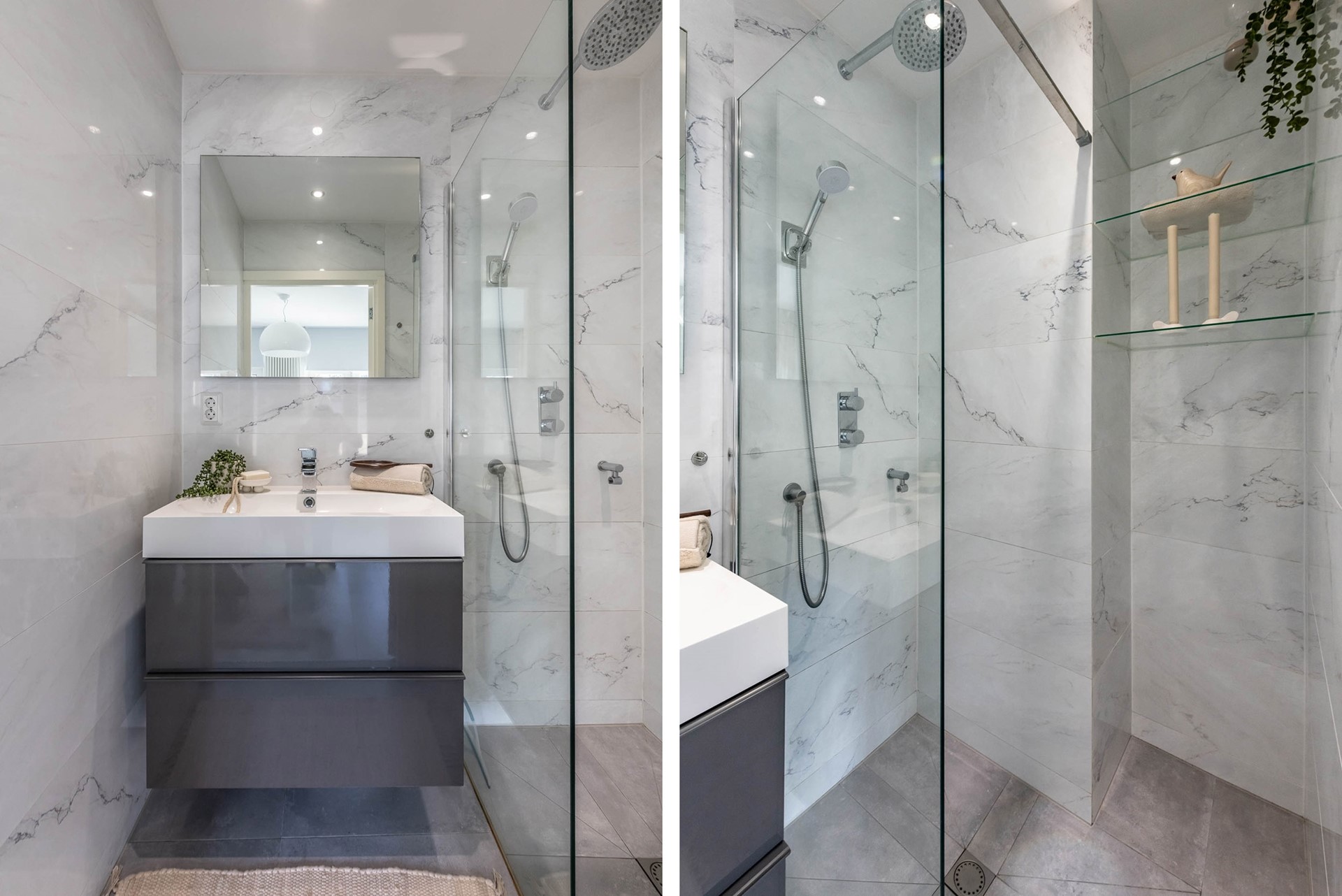 Adjacent to the living room is the bedroom, which also features large windows. The bathroom, equipped with a walk-in shower and a sink, is accessible from the bedroom. From the bedroom, you also have access to the balcony, a lovely spot where you can quietly enjoy a cup of coffee in the sun in the morning.