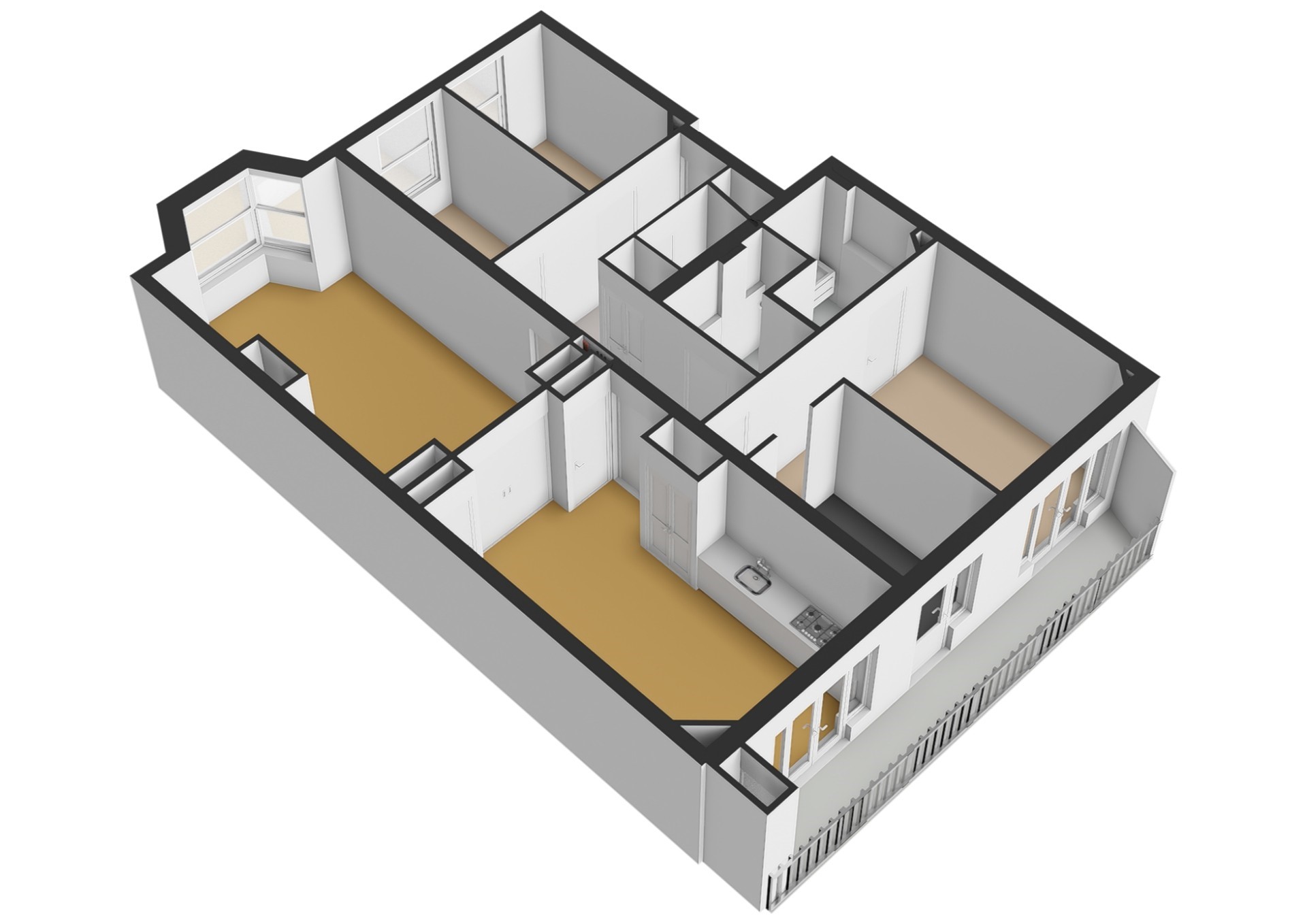 At the front are two additional bedrooms of similar size, ideal as children's bedrooms, guest rooms, or home offices. The rooms are equipped with air conditioning and UTP connections. A second stylish bathroom with a shower, sink, and toilet completes the apartment.