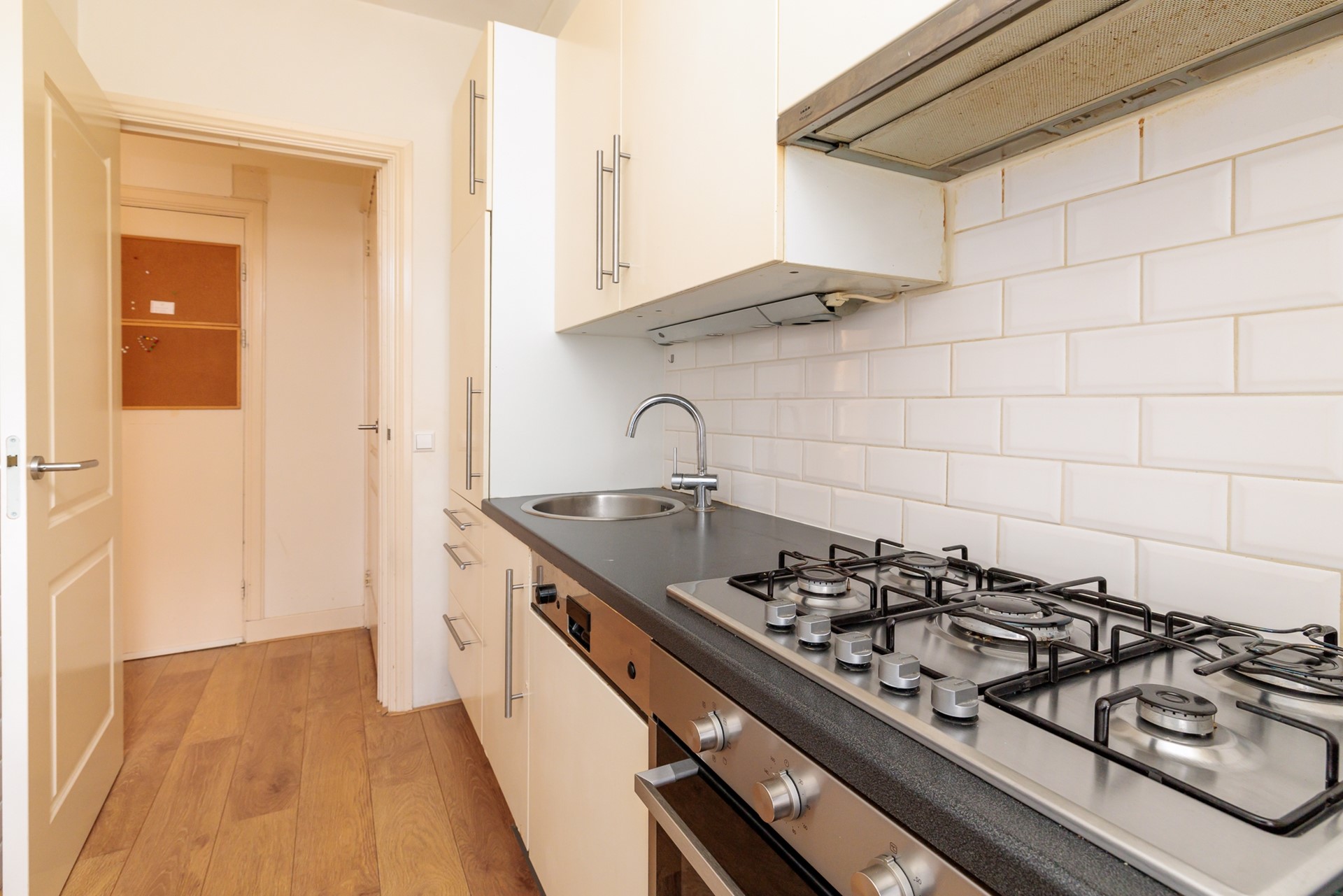 Via het gemeenschappelijke trappenhuis bereik je de entree op de tweede verdieping. De hal geeft toegang tot alle vertrekken. De lichte woonkamer is voorzien van grote raampartijen en biedt toegang tot het balkon, waar je op zonnige dagen fijn buiten kunt zitten. De keuken is netjes uitgevoerd en beschikt over inbouwapparatuur. De badkamer is praktisch en verzorgd, voorzien van een ligbad, toilet, aparte douchecabine en wastafel. De slaapkamer ligt aan de rustige achterzijde en biedt ruimte voor een tweepersoonsbed en kastruimte. Door de keuken eventueel naar de woonkamer te verplaatsen, kan de huidige keukenruimte eenvoudig worden omgebouwd tot een extra slaapkamer, een waardevolle toevoeging voor wie meer ruimte wenst.