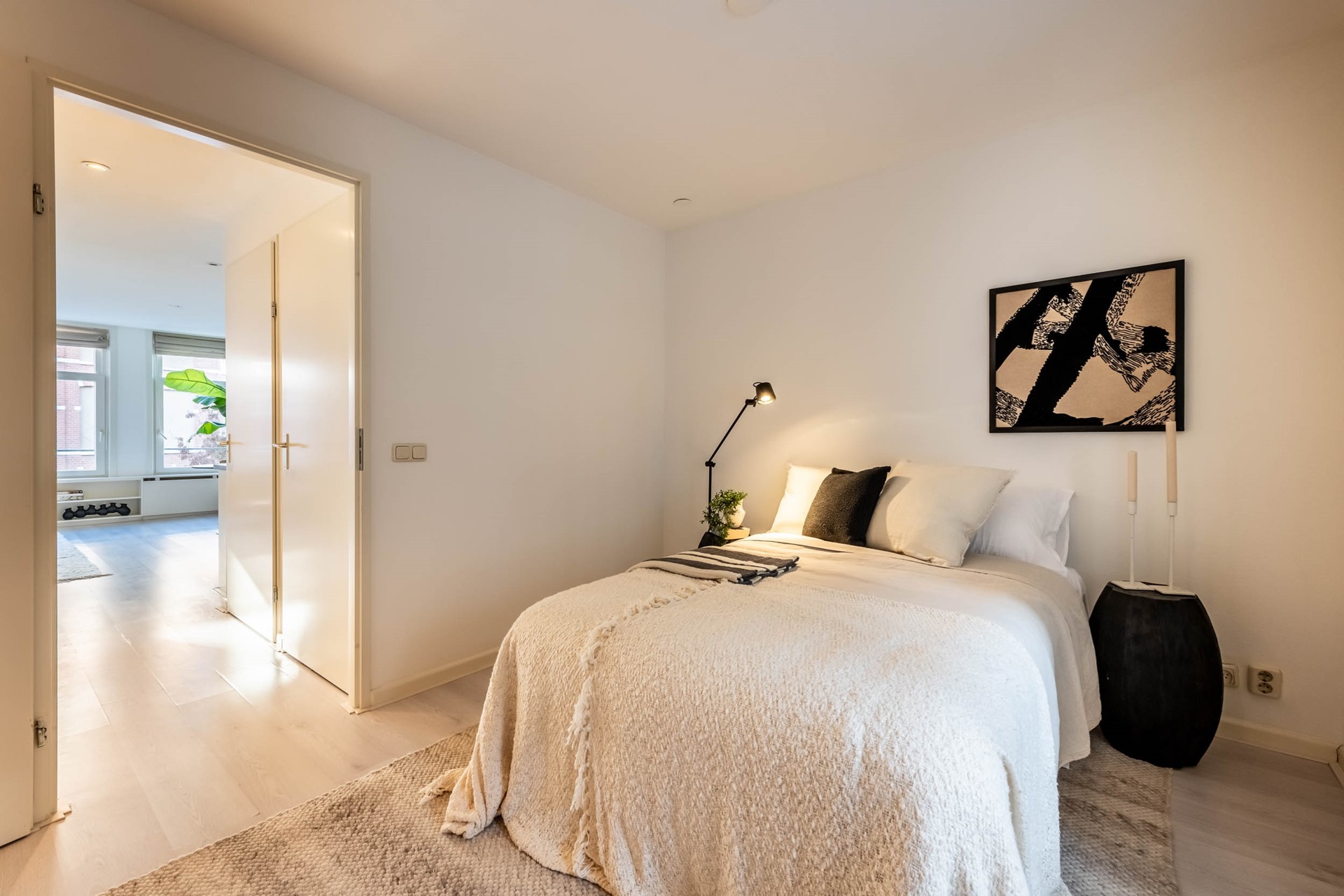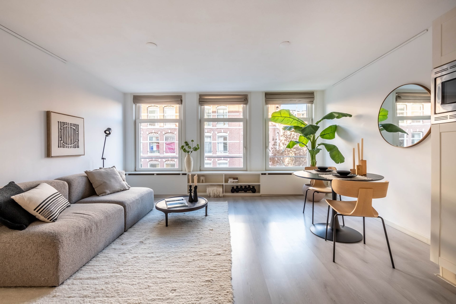 Located on the second floor of a prestigious building on the popular Van Hogendorpstraat, you'll find this fantastic apartment. Upon entering, you'll immediately notice the apartment's pleasant open layout. A bright living room with generous windows and an open-plan kitchen, equipped with a refrigerator with freezer compartment, dishwasher, combination oven, 4-burner gas stove, and extractor hood. Cooking is no problem here! The living room offers ample space for a comfortable sofa and dining area. From the sofa, you have a wonderful view of the charming and quiet street.