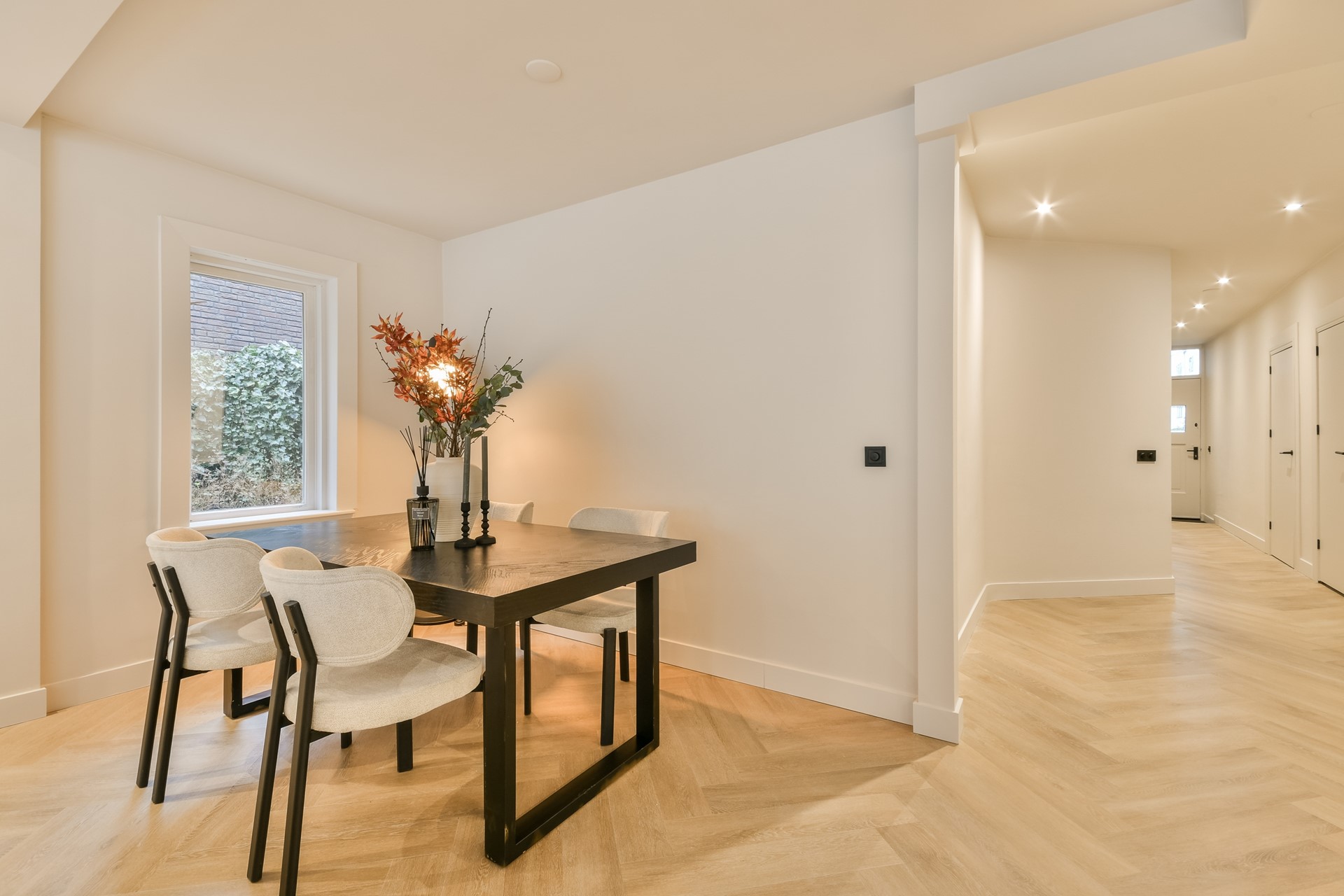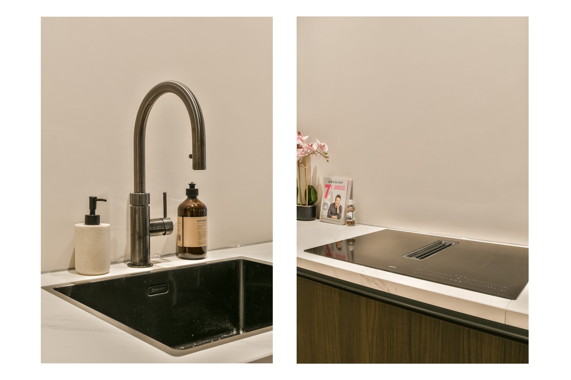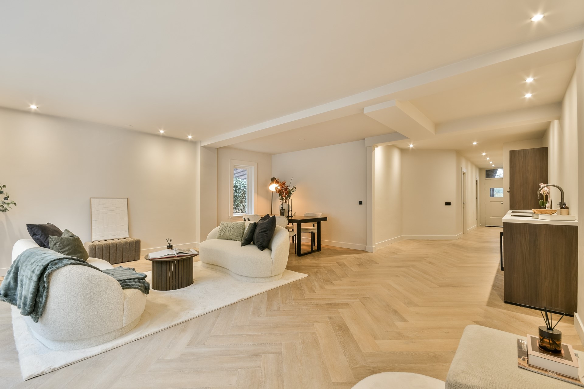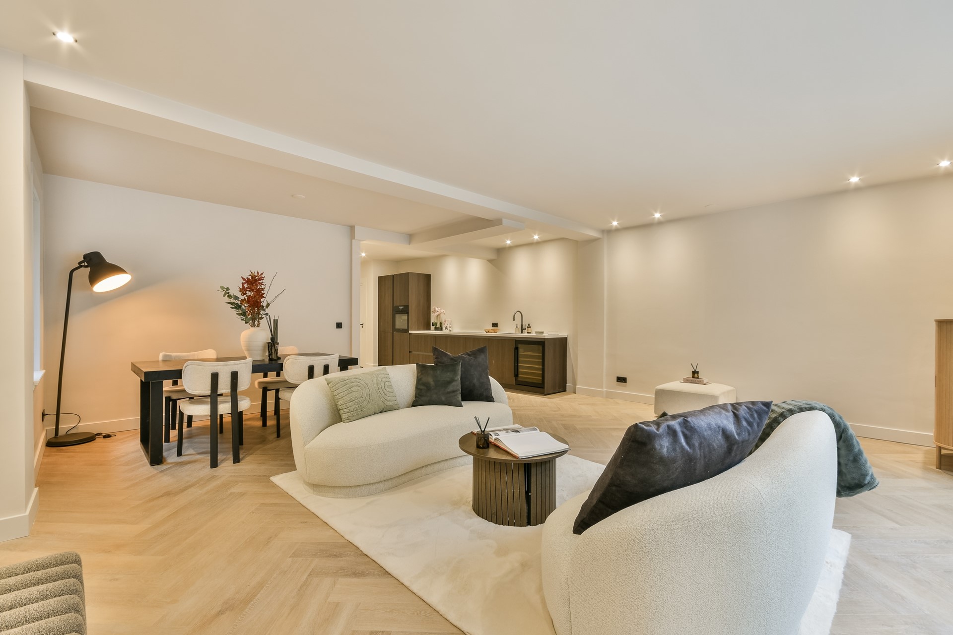 Through the entrance you enter the bright and spacious living room. The living room is characterised by large windows that provide plenty of natural light and a pleasant atmosphere. The luxury open-plan kitchen is equipped with high-quality built-in appliances and offers ample workspace and storage. Here you can easily prepare elaborate meals and entertain guests.