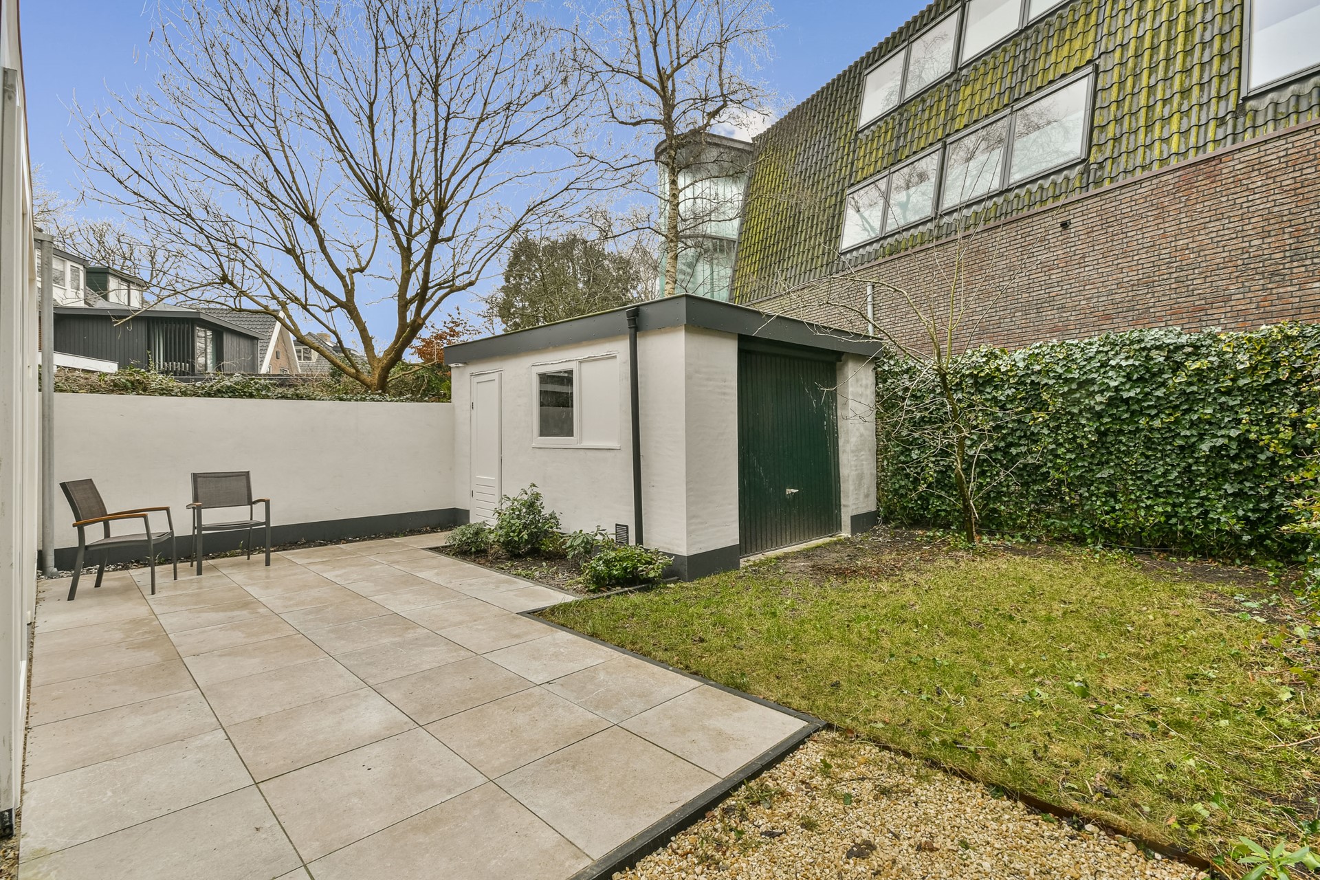 From the living room you have access to the sunny south-facing garden. This outdoor space offers plenty of opportunities to relax, garden or enjoy dining outside. The garden is a pleasant extension of the living space and makes the apartment even more attractive. A very spacious storage shed of approximately 16 m² is located in the garden.