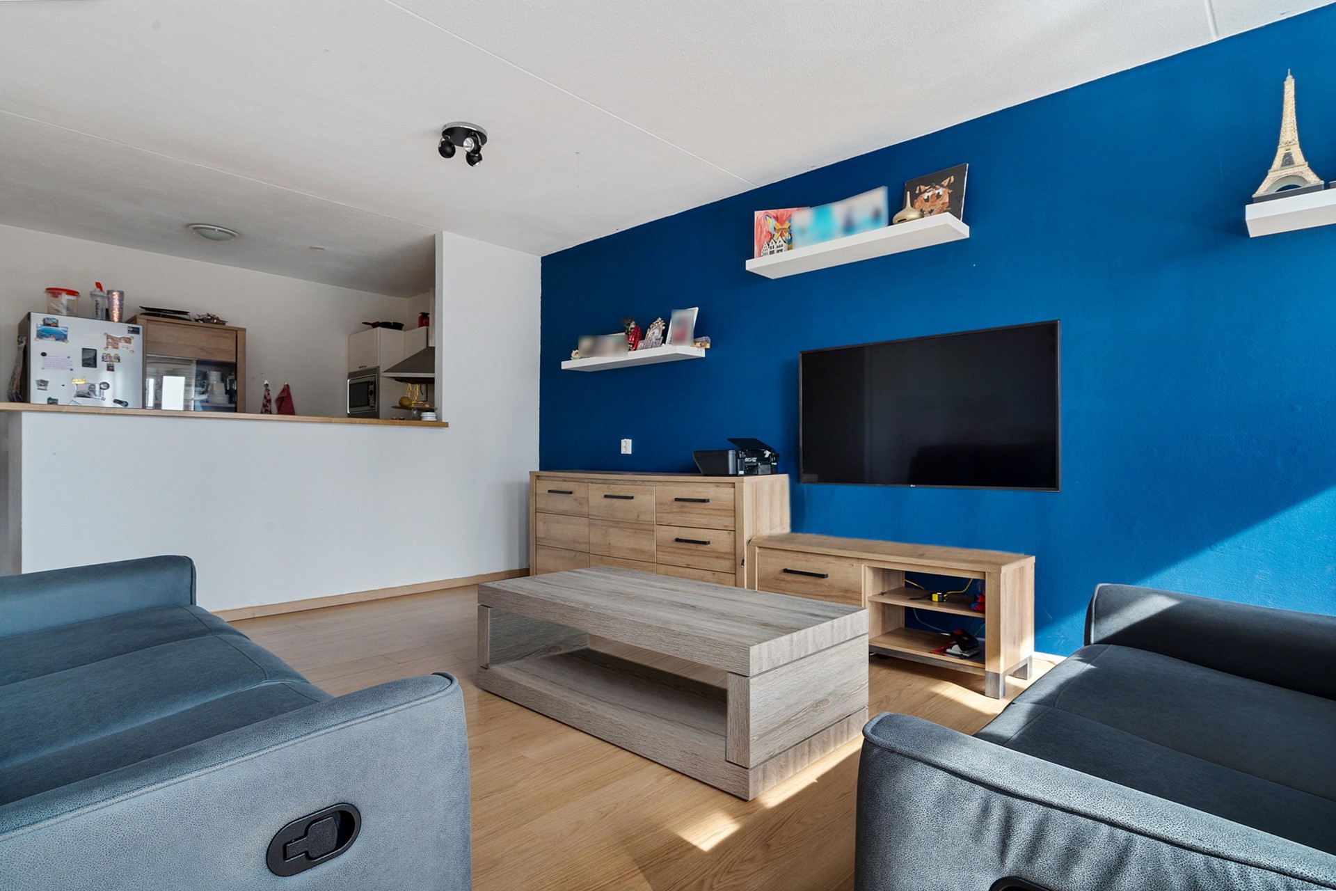 Via de ruime hal kom je in de royale woon- eetkamer. Deze ruime woonkamer is voorzien van veel lichtinval door de grote ramen. Via een deur bereik je het zonnig gelegen en woningbreed balkon (op het zuiden) met veel privacy. De ideale plek om te genieten van de zon en het uitzicht. De keuken is voorzien van diverse inbouwapparatuur zoals een combi-magnetron, een oven, RVS koel- vriescombinatie, fornuis en afzuigkap. Vanuit de woonkamer bereik je een hal met toegang tot 2 ruime slaapkamers, een separaat toilet en de moderne badkamer.