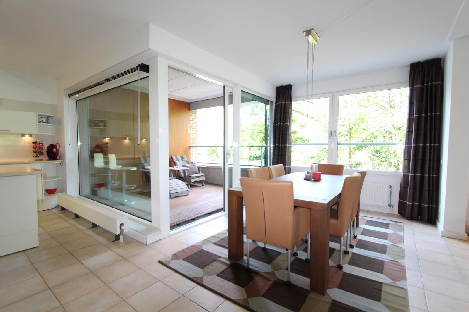 This light and spacious two bedrooms apartment on an elevated ground floor is located in a beautiful and modern 50 apartments building called "Mozaïek". The living room (ca. 40 m2) and westerly orientated balcony (9 m2 ) are offering lots of privacy and are overlooking a pond in a green park-like scenery.