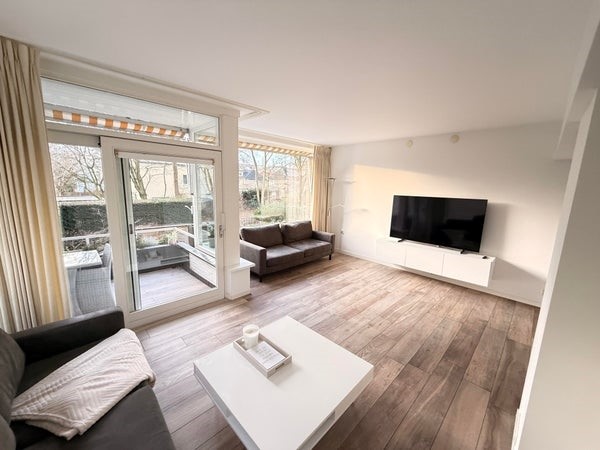 * Vanuit de woonkamer toegang tot het royale, op het zuiden gelegen balkon met uitzicht op het park en water.