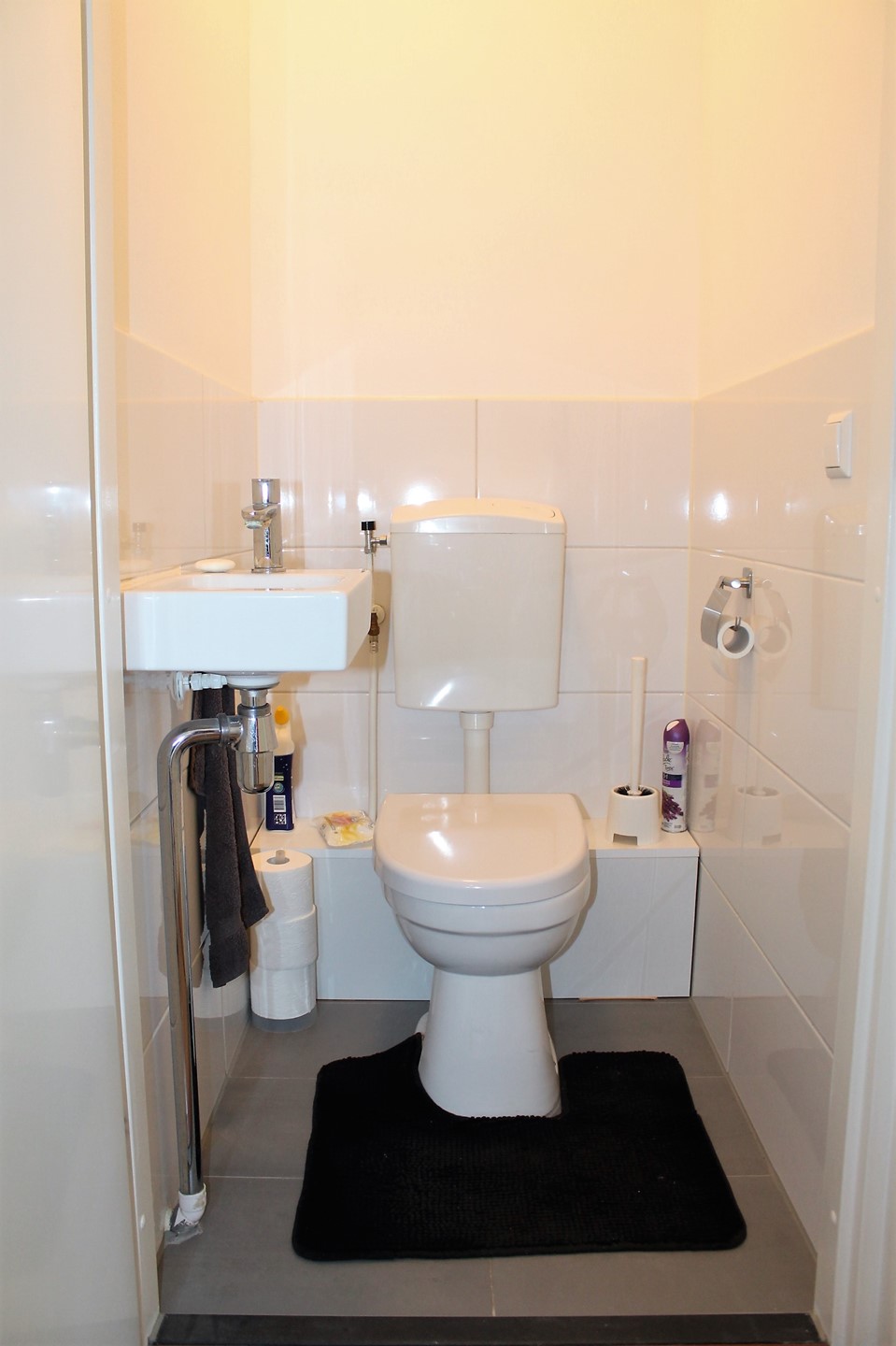 On the top floor there are 3 more good size bedrooms. 2 bedrooms are fitted with a queen-size bed and wardrobe. The last bedroom is empty and can be used as a study or even as a gym. The washer / dryer combination is placed in this room. The bathroom is fitted with a shower and a wash basin and the second toilet is separate.