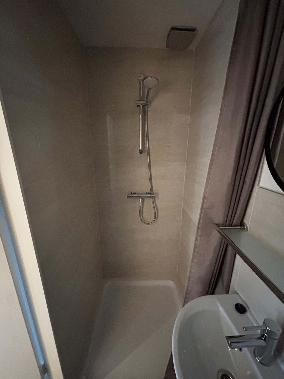 De ruime slaapkamer beschikt over een tweepersoonsbed en een grote kledingkast en biedt directe toegang tot het balkon. Hier kunt u heerlijk genieten van de avondzon. De badkamer is modern uitgevoerd en voorzien van een inloopdouche en een stijlvol wastafelmeubel. Daarnaast is er een separaat toilet in de woning.
