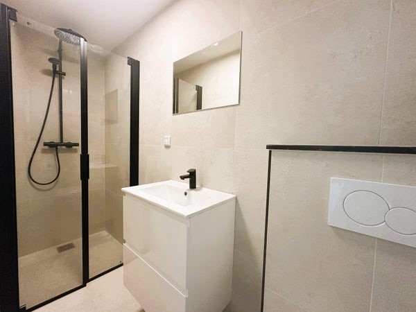 * One bathroom with walk-in shower, wash basin and toilet.