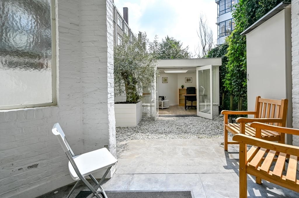 Very comfortable family house (apartment on the ground floor, approx. 126 m2) with three bedrooms and a nice (sunny, facing southwards) garden. The garden has a spectacular, fully isolated garden house, with electricity, internet, heating, and cold and warm water, which is ideal as an extra workspace.
