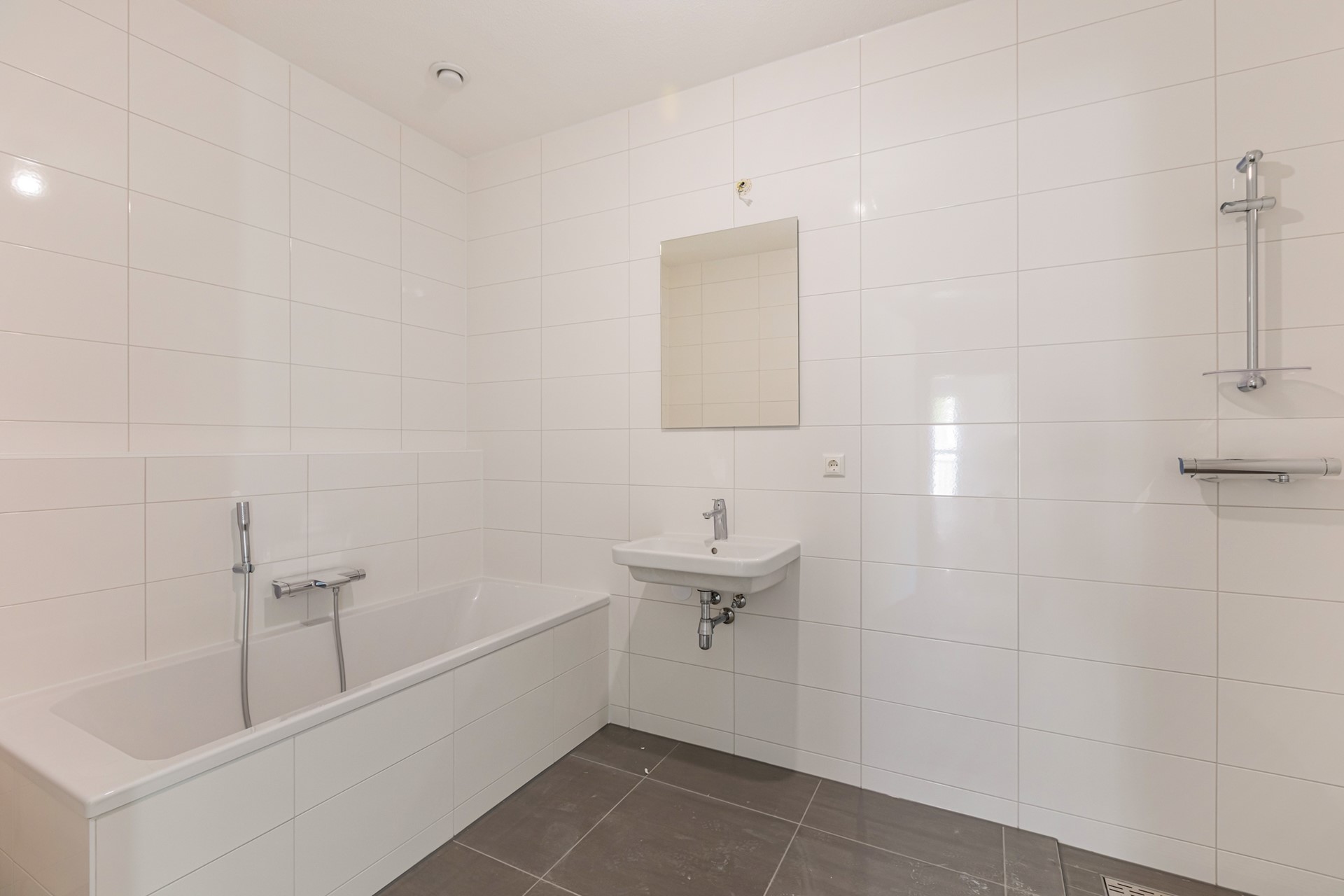 Aan de achterzijde van het appartement vind je een gang die toegang biedt tot de moderne badkamer, voorzien van een ligbad én aparte douche. Direct naast de badkamer bevindt zich een tweede toilet, extra comfortabel voor dagelijks gebruik of bij bezoek. Daarnaast zijn er twee comfortabele slaapkamers, beide met directe toegang naar buiten.